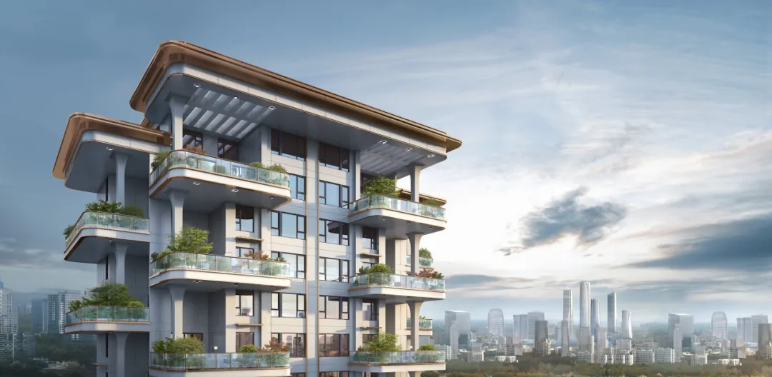根据重庆地貌与人文特色,打造错层约6m挑空阳台+鸥翼顶设计,以建筑人文与自然之景相呼应,探索全新生活场景。
