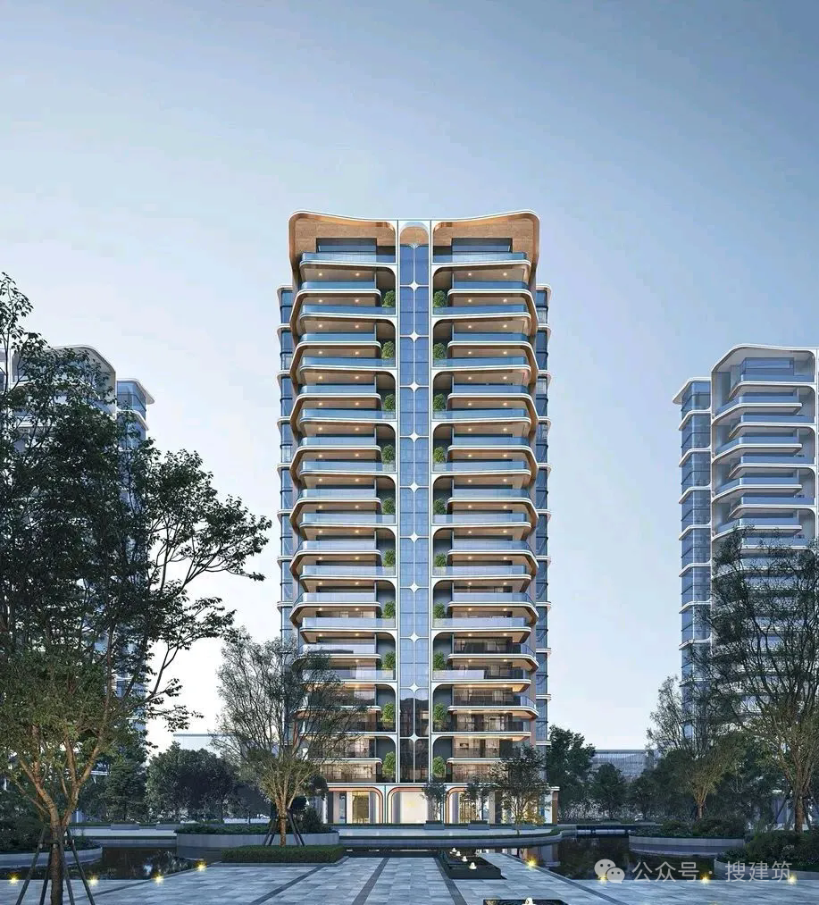 福建福清云上龙锦立面设计标志性的游艇风立面,以湖水为灵感,让建筑像一艘艘游艇穿行于天际,线条流畅,动感丰富,诠释现代城市的建筑美学,造就震撼的视觉盛宴。