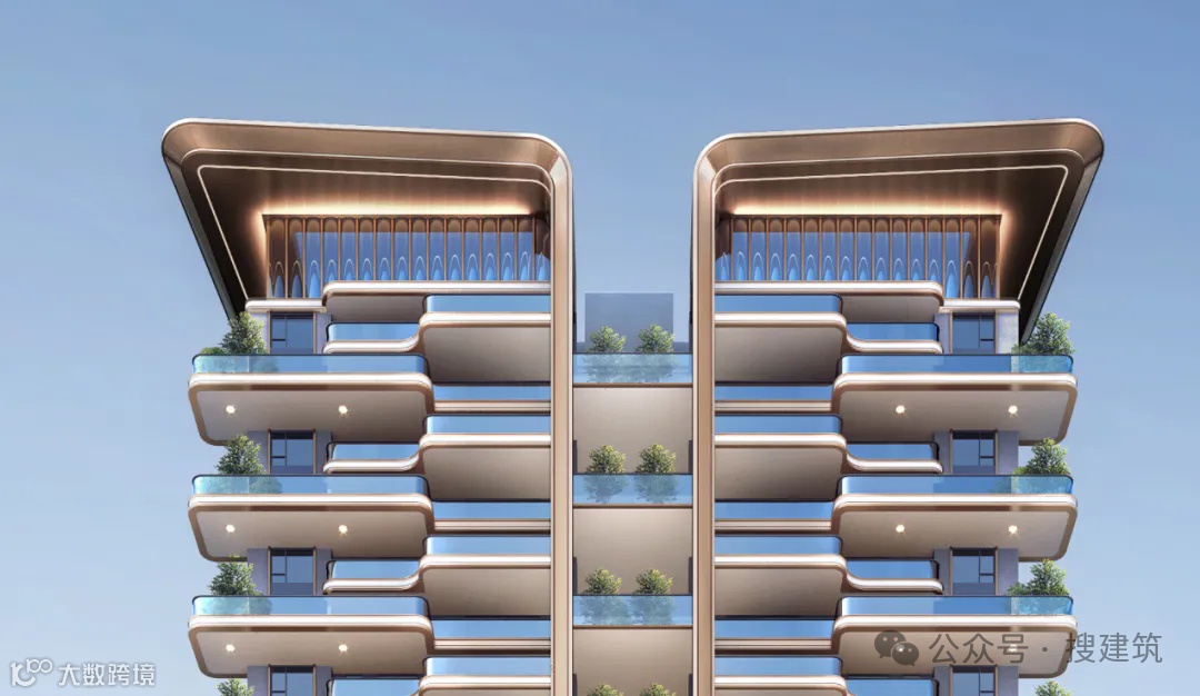 西安中铁建·西派玺悦外立面创作灵感来自“水流盘曲”,采用现代流体美学语言,错动的空中露台向外延展,形成自然韵律,有机质感的建筑表皮像流水一样自由延展、蜿蜒流长。