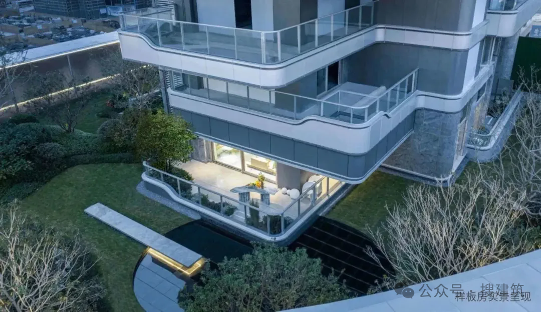 采用超大面积的玻璃幕墙,在金属铝板、温润石材搭配下,横向线条更加凸显洋房大面宽,无限升级低密产品高端奢华感。