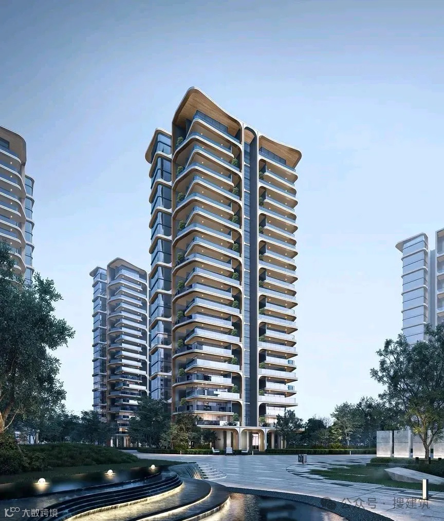 西安·万众·云缦玫瑰园立面设计,镜面美学,匠造流云曲线建筑。