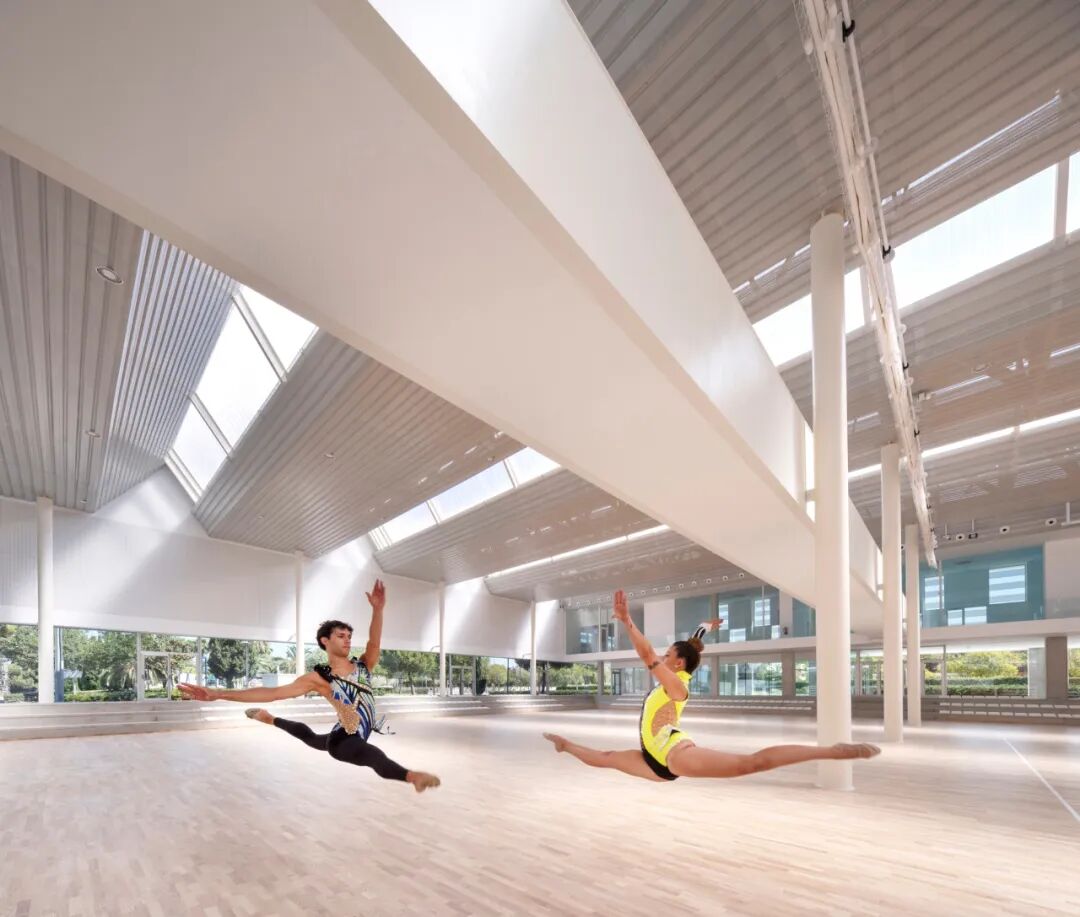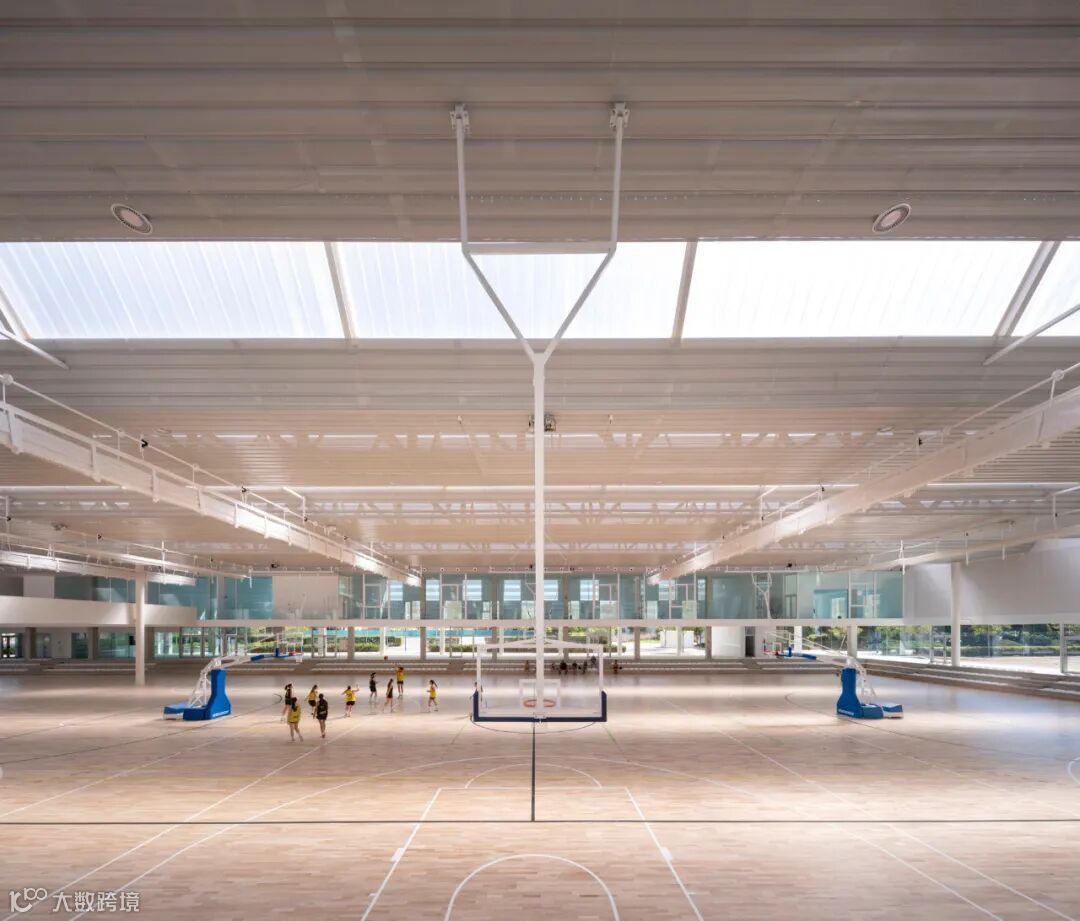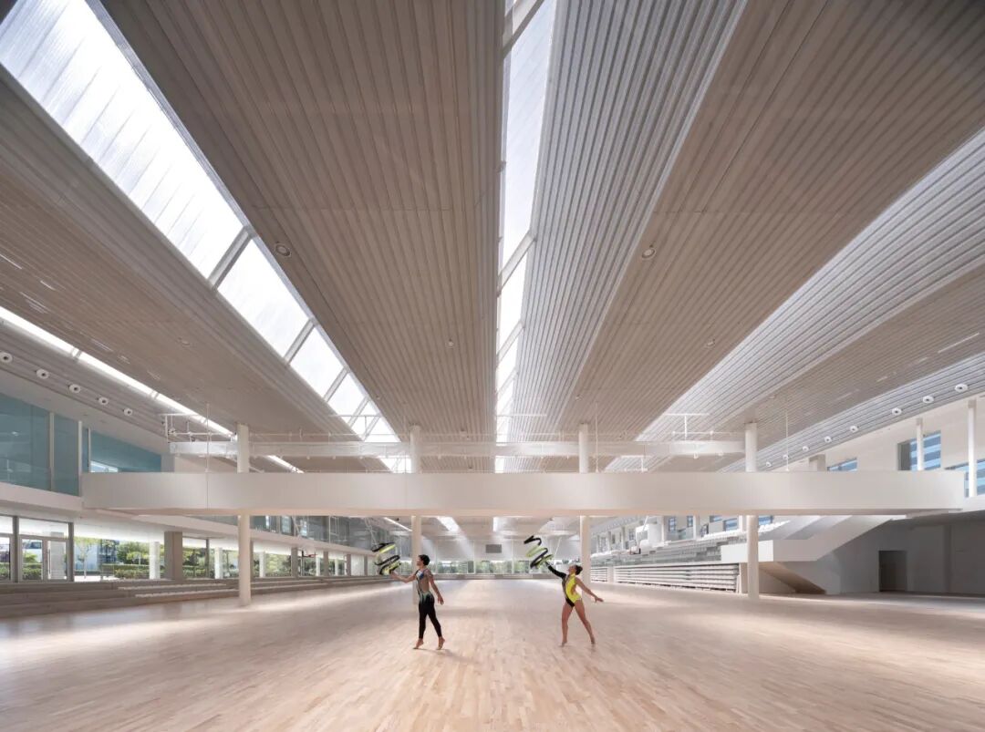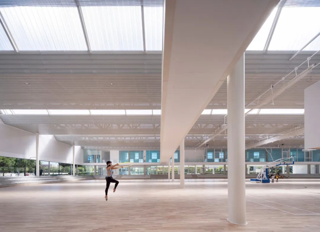 为了最大程度地实现空间的多功能性,不同的运动方式被集中在两个大空间内:一 个是用于团队运动方式的中央空间,其容量相当于 4 个室内篮球场;另一个是用于定向 活动和健身房的房间空间。