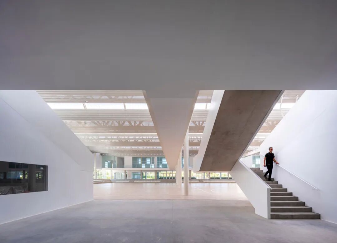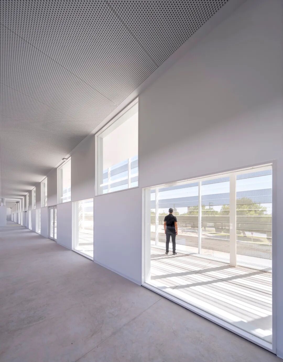 The building is configured as a very high energy efficiency system, maximizing the natural lighting of all spaces and configuring a motorized natural ventilation system that allows cross ventilation of the entire volume through its facades and the vents located in cover, allowing the nighttime dissipation of the heat accumulated during the day.