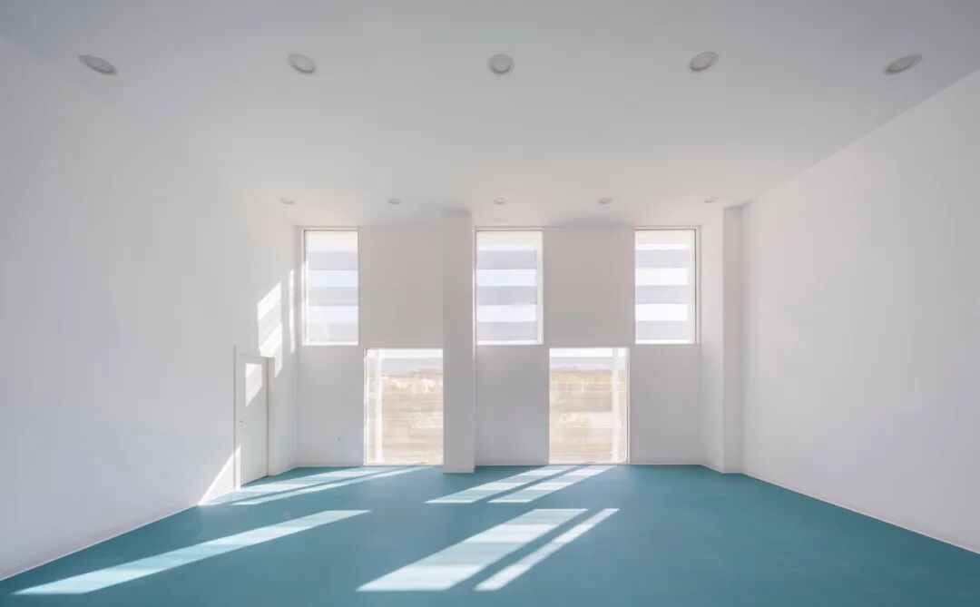 Each of these interior spaces will be characterized by different nuances of light and color: the central space, overhead lighting through 5 skylights facing North and with a predominance of the warm tones of the wood of the flooring; the activity rooms, through illumination, filtered through the two sheets of the facades and the different cold tones of its floors.