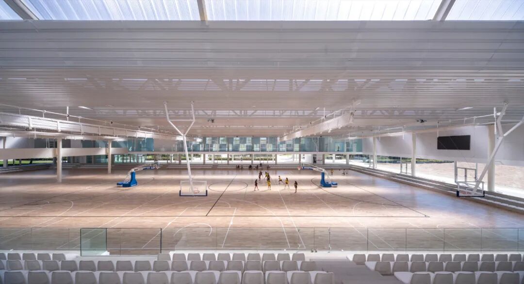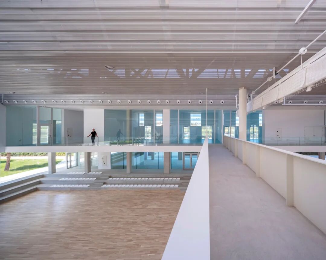 The Municipal Sports Pavilion of San Vicente del Raspeig is configured as a large container of great versatility to host multiple sports modalities and large capacity events in general, in which the visual connection between interior and exterior becomes one of the directing threads of the project with the aim of making sports practice visible from the outside as a measure to promote sports.