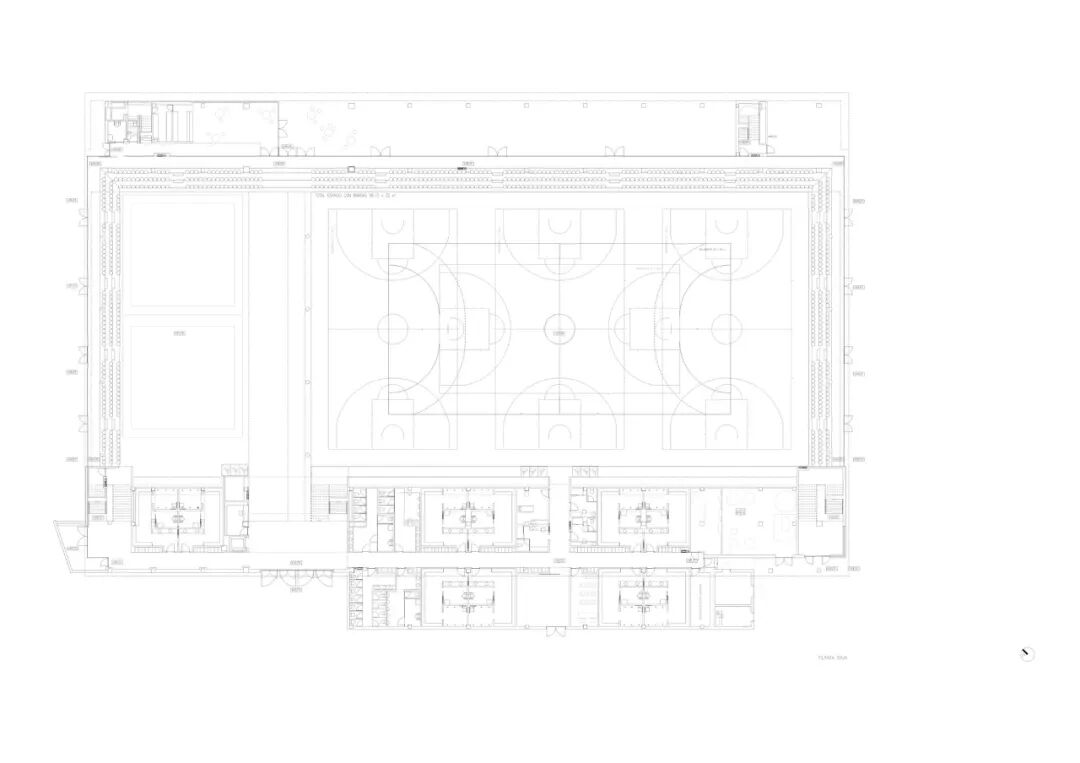 To achieve the greatest degree of versatility of its spaces, the different sports modalities are grouped in two large spaces: on the one hand, the central space intended for team sports modalities and with the equivalent capacity of 4 indoor basketball courts and, on the other, room spaces for directed activities and gyms.