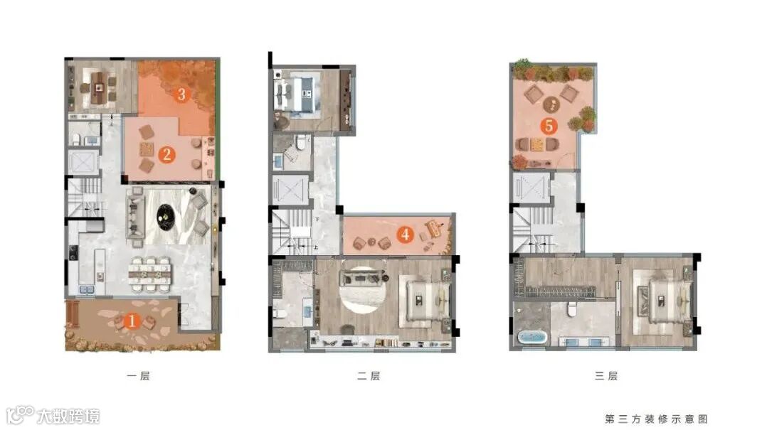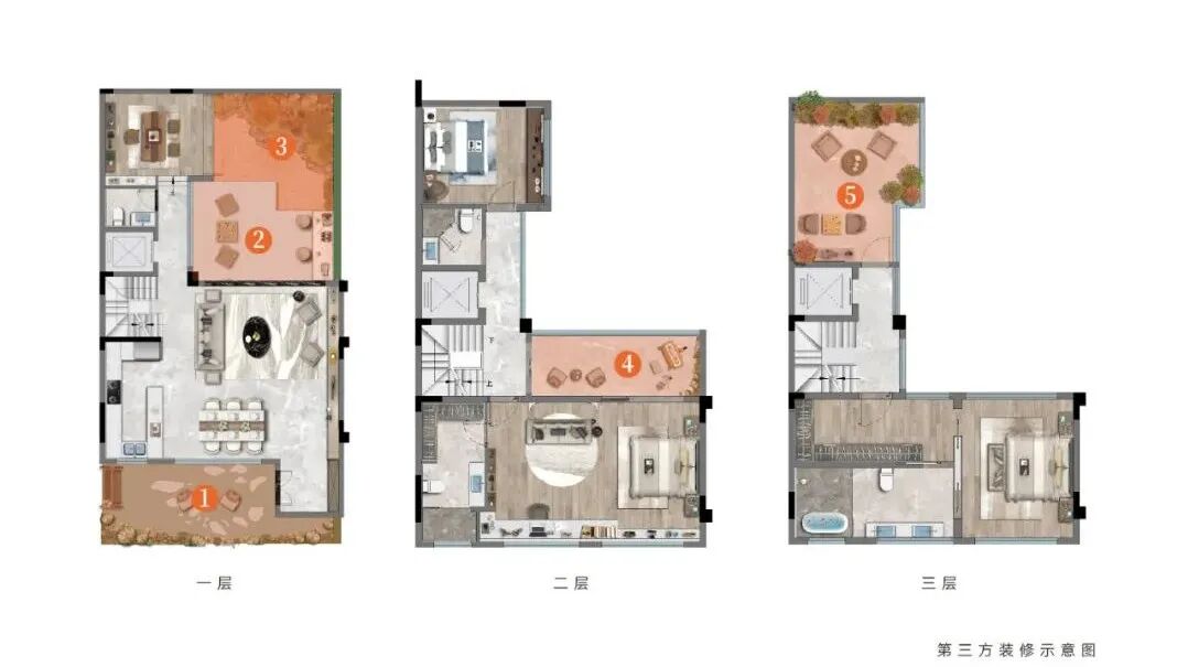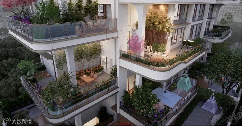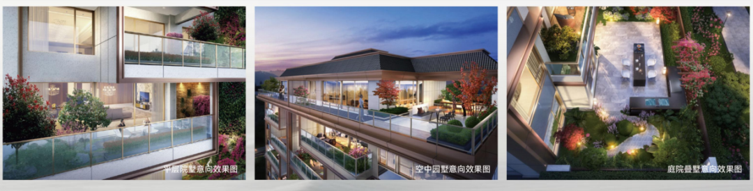 汲取消费降级大环境下,依然坚守品质的新中产需求大尺度庭院、大尺度露台、大尺度景观阳台。