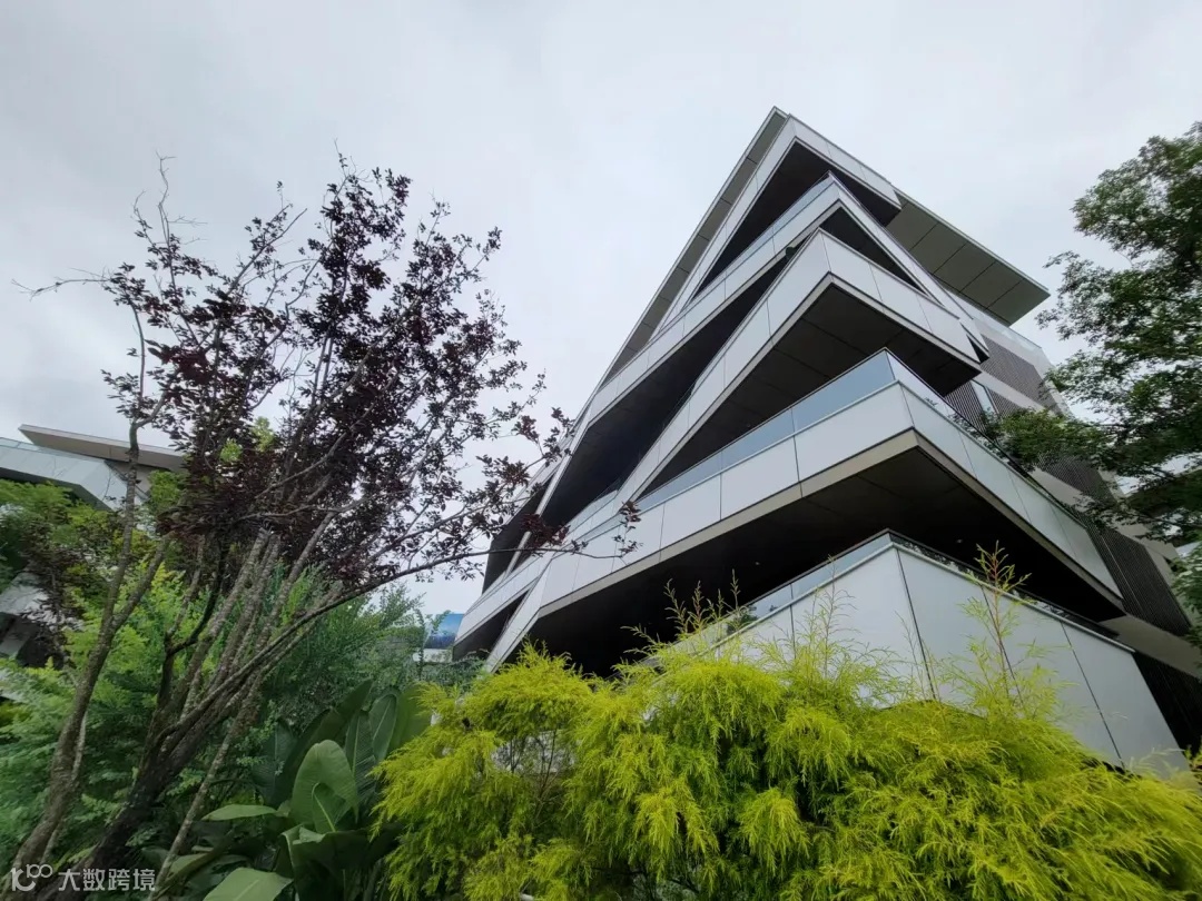 设计团队将重庆连绵起伏的山形地貌,抽象为波浪折线立面,产生跌宕起伏的立体感,构建出了流动在建筑上的现代山水。白色的立面象征重庆的薄雾漂浮;80%的金属铝板材质,配上玻璃栏板;铝单板、铝格栅、铝灰挡板、旭格门窗系统