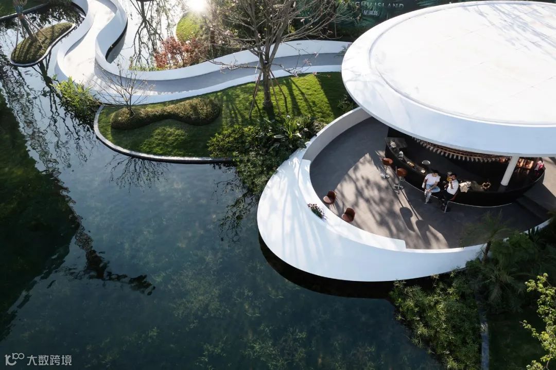 示范区设计把莫奈花园、水镜石砌、乌桕林、白玉兰等元素,高度凝练在咫尺空间中;利用光影与角度,展示出整片玉兰花瓣墙厚重与内敛的视觉效果;桕树排布的树阵,与水景融合,形成曲水林霞;以自然为核心,打造隐秘安逸的城芯“世外桃源”。