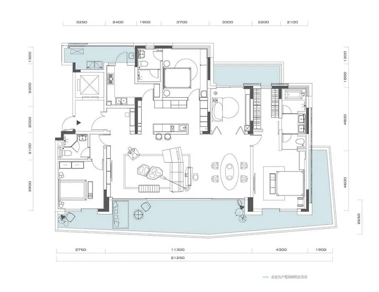 根据重庆地貌与人文特色,打造错层约6m挑空阳台+鸥翼顶设计,以建筑人文与自然之景相呼应,探索全新生活场景。