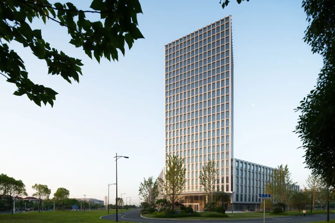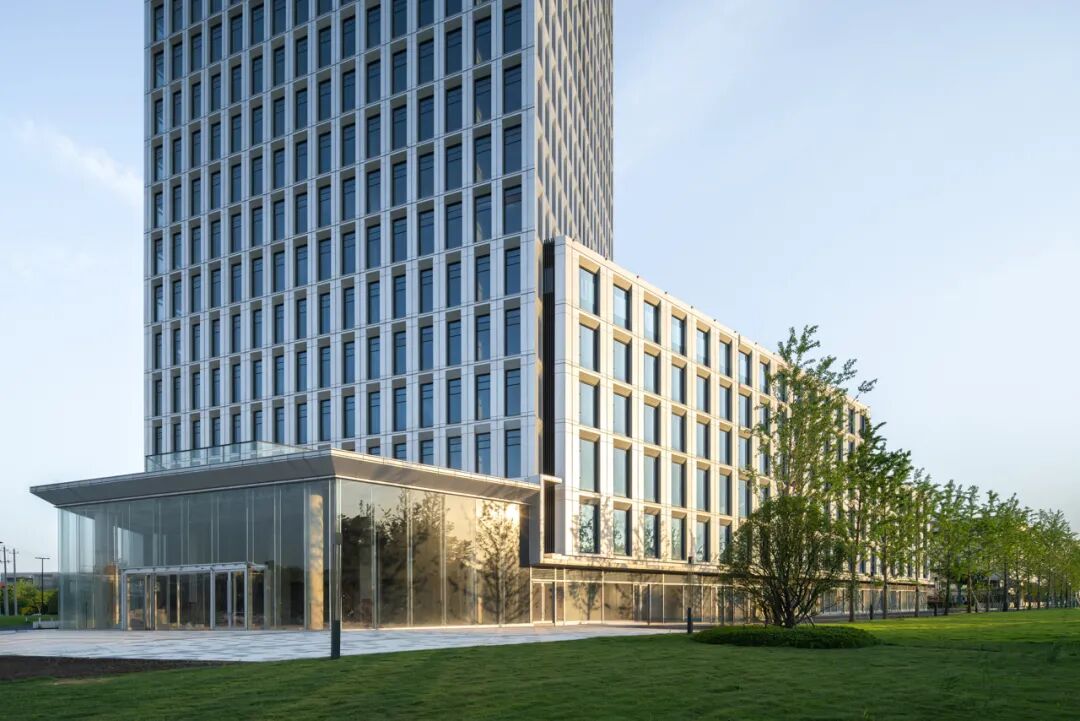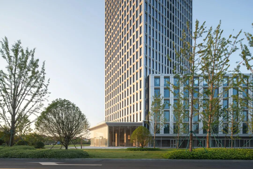 Additionally, along Yangshan Road, there are two towers: an office tower and a talent apartment tower. These buildings and the hotel form a city skyline, creating a unique and contemporary city icon.
