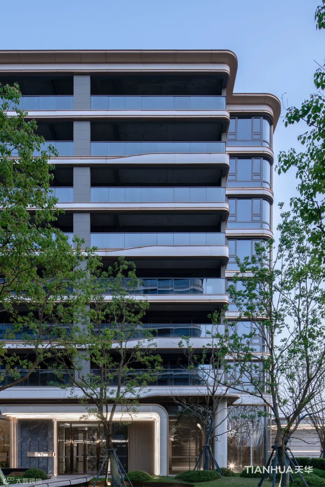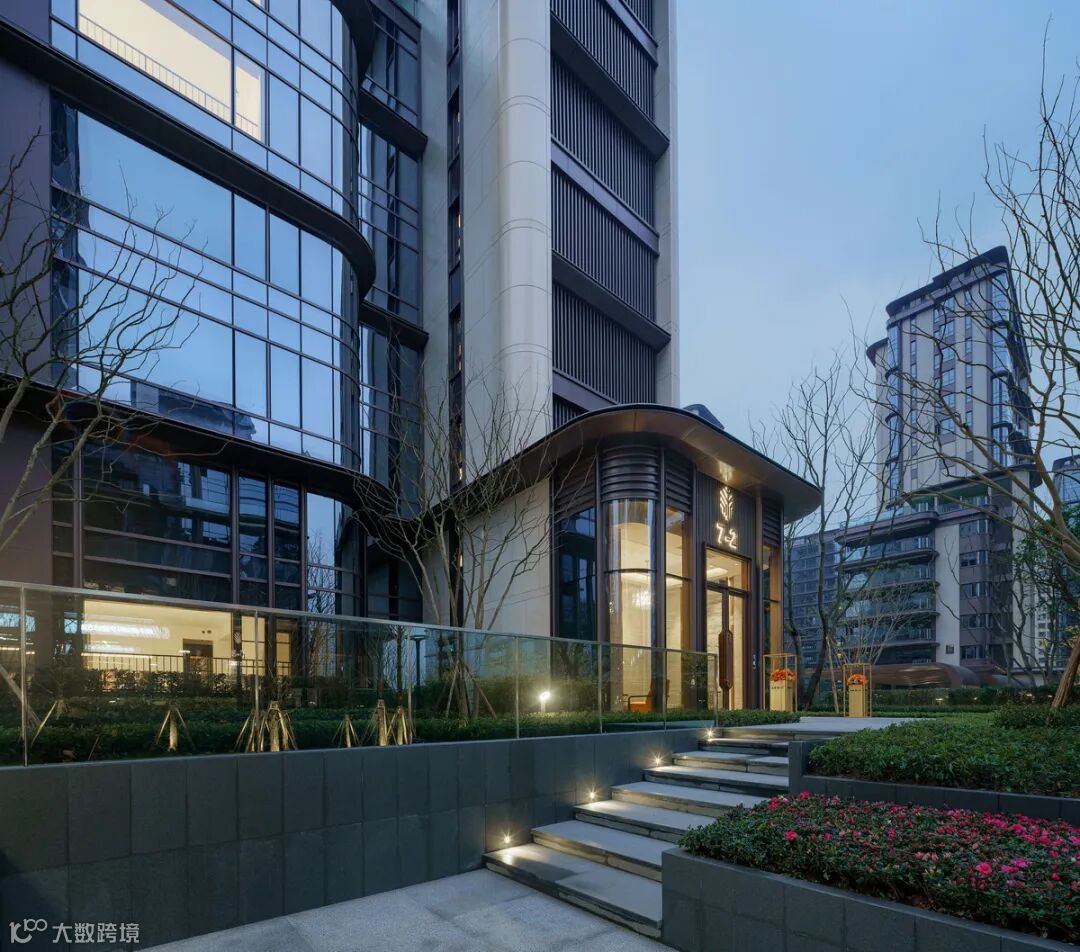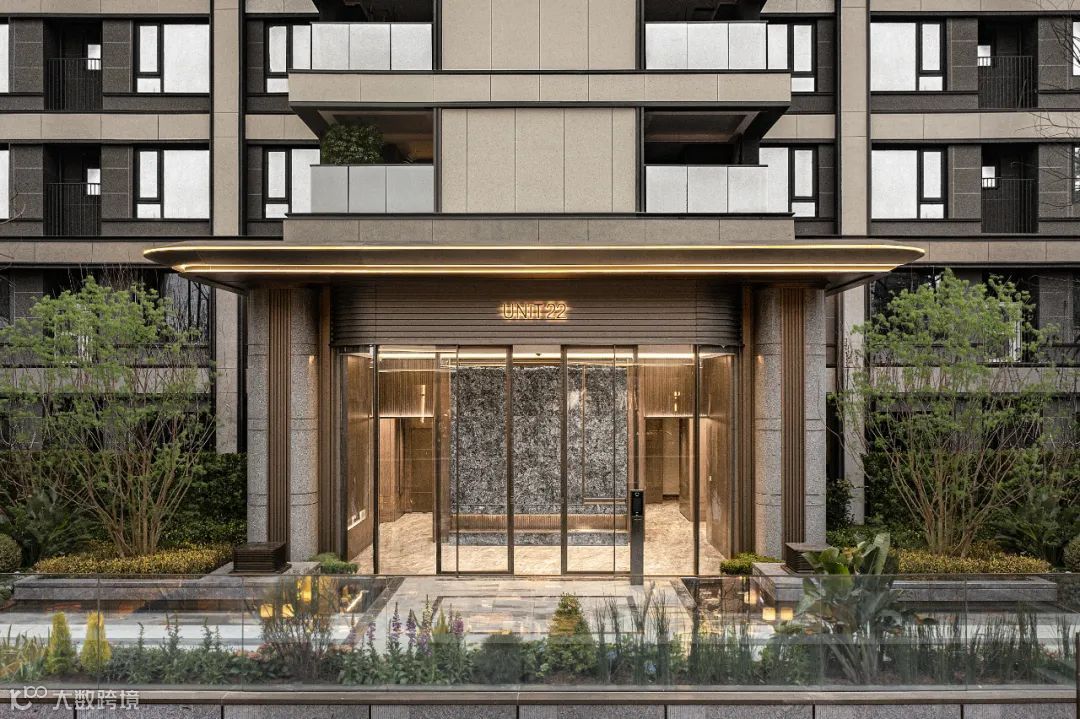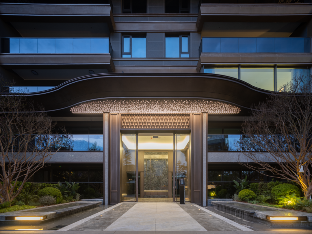 成都龙湖滨江·云河颂独特的流线设计,打造极具工艺感的单元入口。