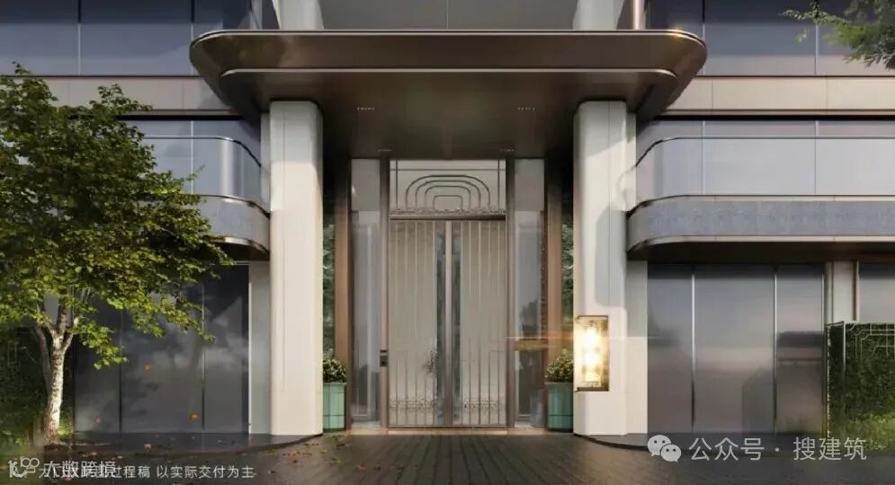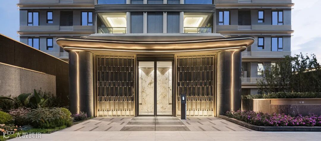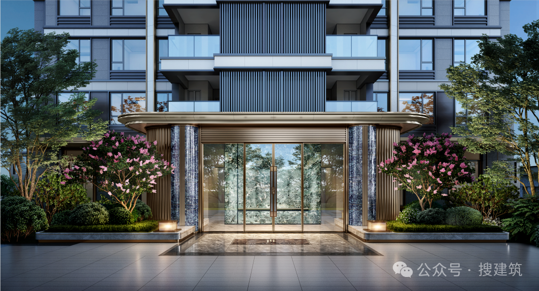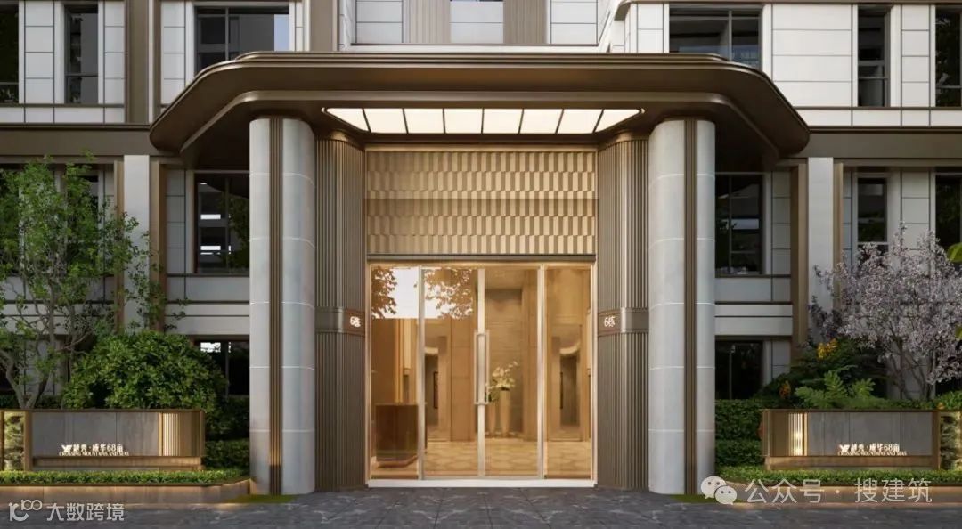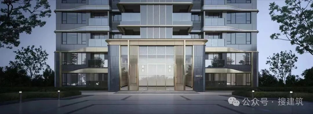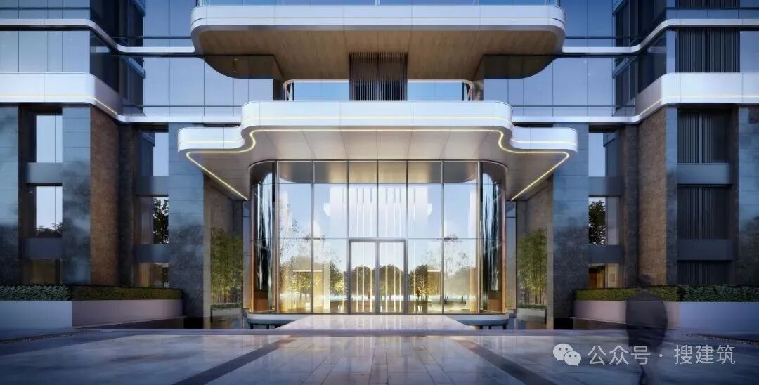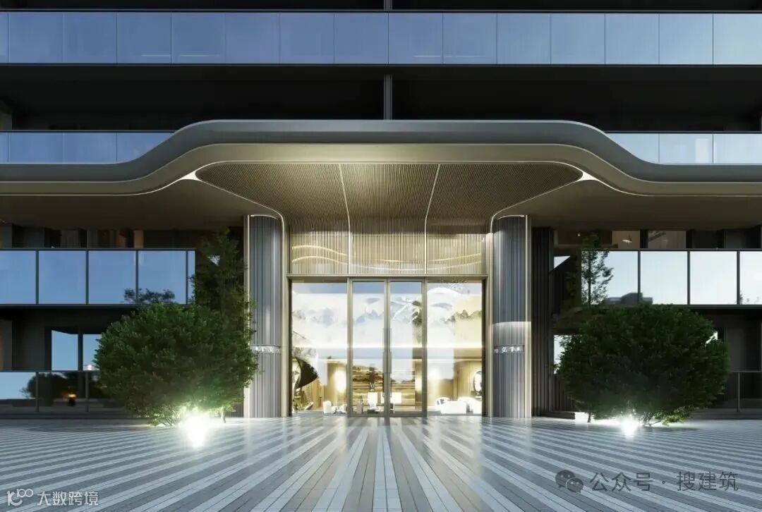 本期搜建筑给大家分享30款采用非常有仪式感、未来感、富有曲线美感的单元门头设计。