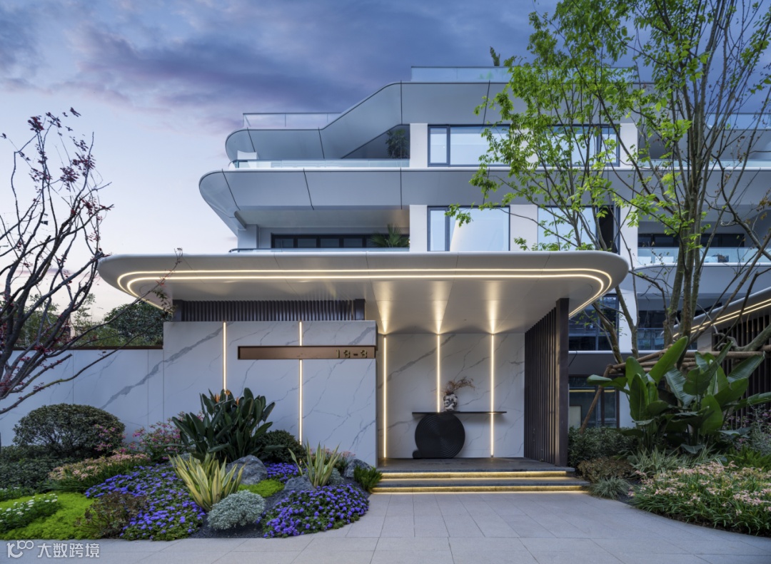 线条是设计最直观的表现手法,而曲线作为其中一种几何形态,更能增加建筑的灵动与柔美,提升建筑张力。将曲线运用到单元入口的设计中,用曲线来表达空间和思绪的流动,以多元的视角打造出多样化的作品。