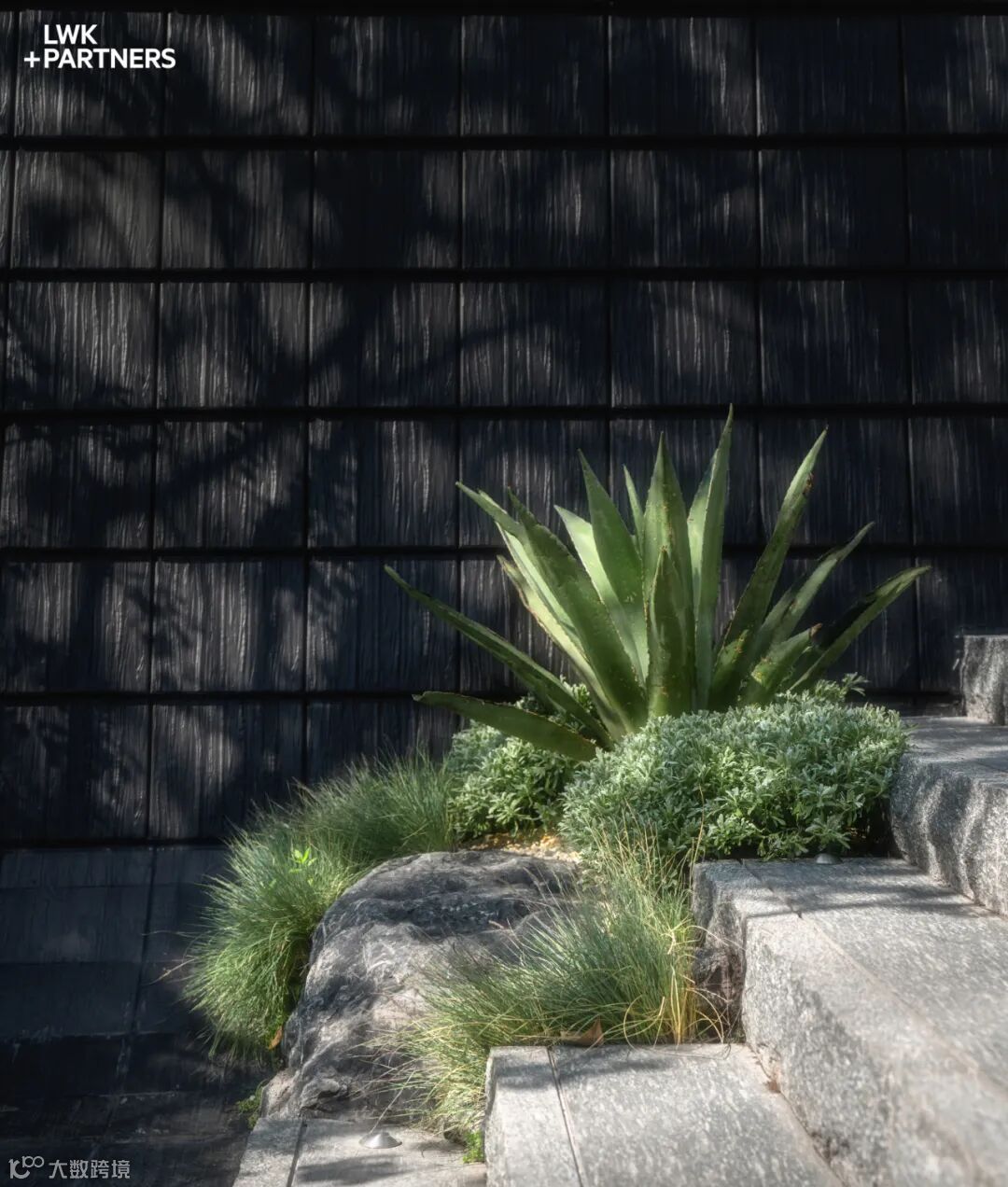 几个小空间独立又联系,给客户室内外穿行迂回,游园般的体验。与屋顶的简约和写意相比,檐下的细节和材料更加精美。