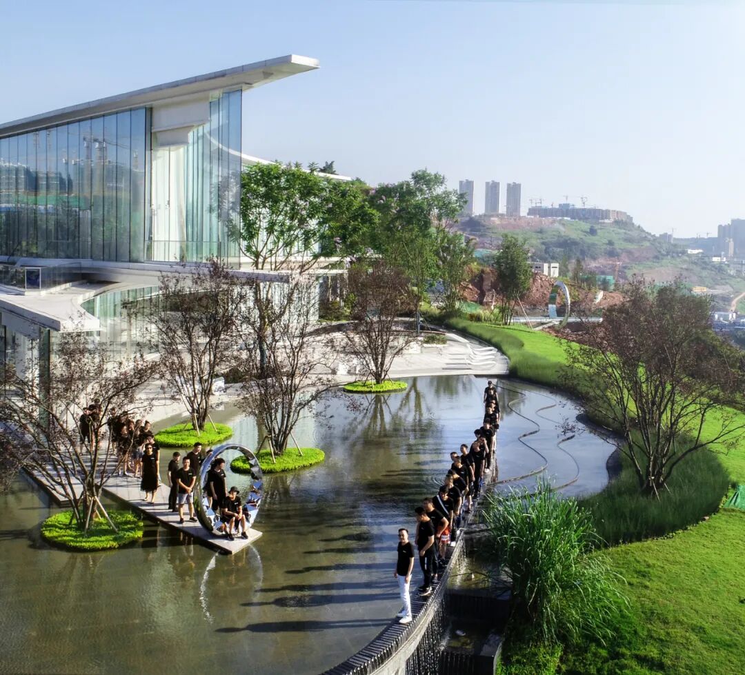 消隐,是建筑追求的初心,把更多的空间,留给景观打造溪流、树林、空地让业主漫步停留。当业主从窗口眺望,树林里一片干净的瓦屋面,是我们认为“很成都”的画面。