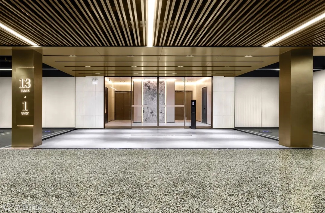 单元入户门:墙面进行格栅美化,配备古铜+定制门牌标识体系,处处彰显细节与氛围,让门也变成了一件“艺术品”。