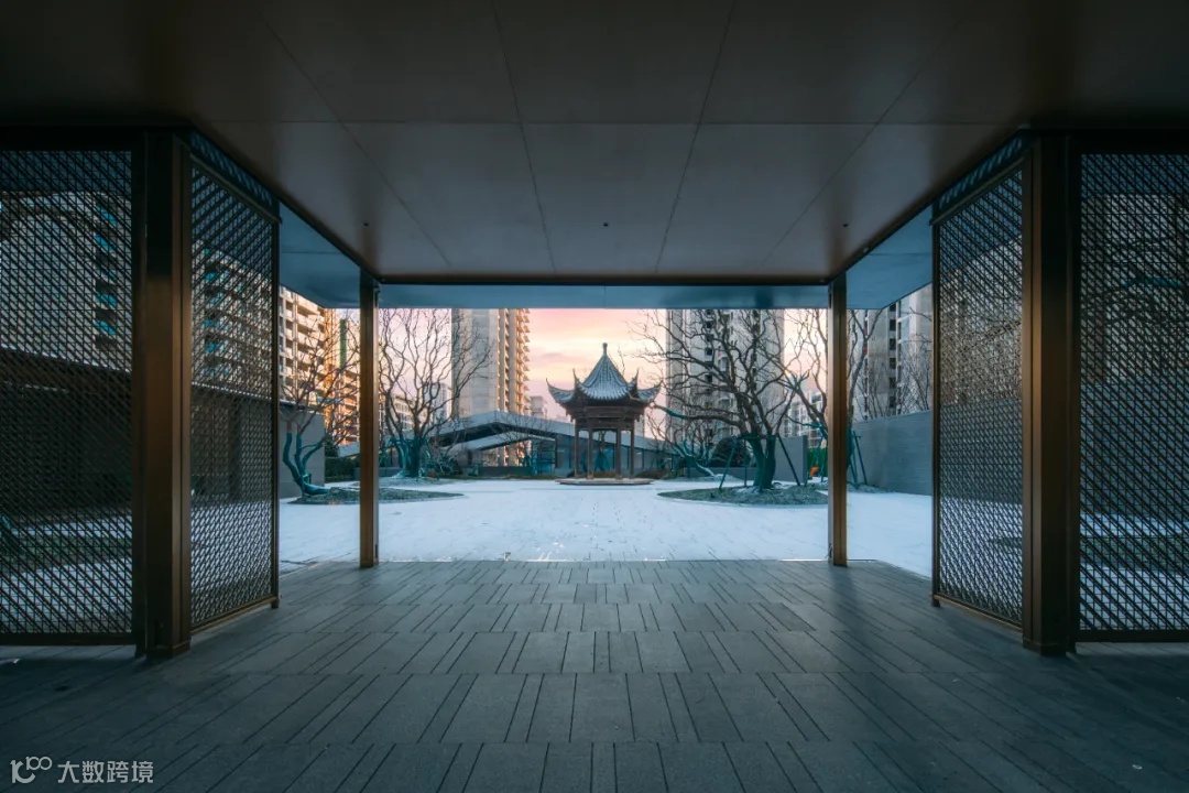 约95m书院水墨画卷式入口,气势磅礴,归家仪式感拉满,完美诠释千年东方尊荣礼序