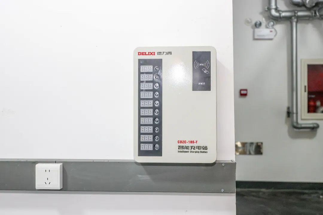 在非机动车停放区域,安装有充电插座,方便业主使用。