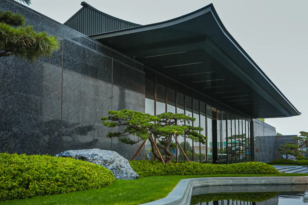 除建筑立面外,金沙·東院各个空间的选材用料均极为考究,几百棵百年名贵树木达到高绿覆盖,营造四季有景的色彩变化效果;曲面异形的园建、台阶、石座凳用条石定制;整石水系驳岸、石桥、水钵、板岩池底铺装,由十几名老石匠历时百日精雕细琢,以细节加码。
