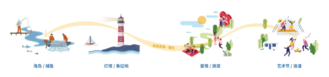 花鸟岛自由烂漫的海岛文化与丰富的海景资源,独具成为“爱情岛”IP的潜力,通过一系列精心策划的活动与项目,我们期冀将花鸟岛打造为情侣们心中的理想的爱情圣地。