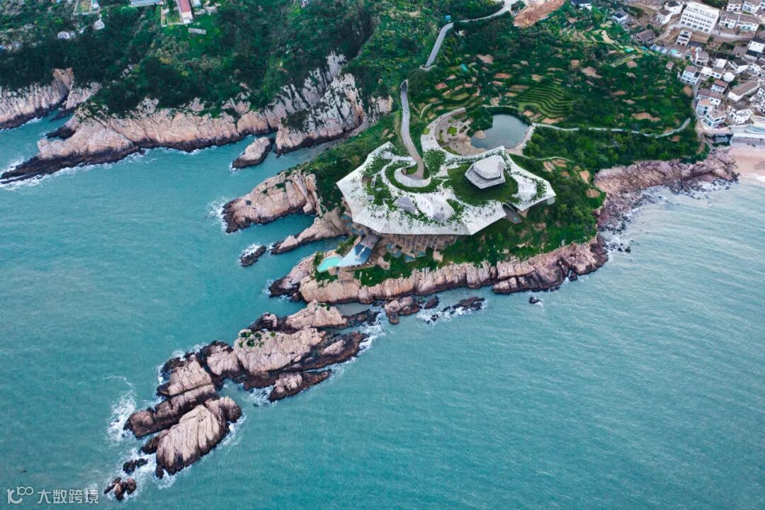 花鸟岛本身生态脆弱、环境承载力有限,长期来都以绿色发展为前提。设计以最小干预原则依据现状地势脉络,以最小的开挖量来整合建筑与礁石。建筑体量分布于不同高程,建筑主体以尽可能低的姿态栖于礁石之上。建筑的屋顶就是一个人造地形,它与自然地形融为一体,是本项目回馈给社会的公共空间;在不影响酒店经营的情况下,同时让所有的游客都能分享海岬的自然风光。
