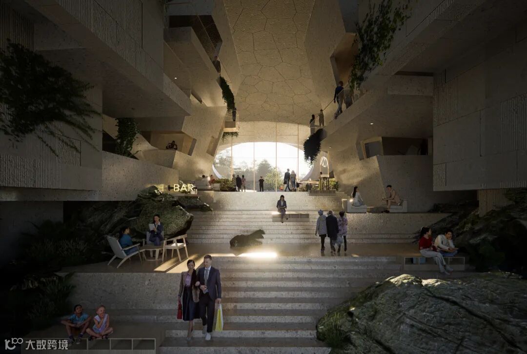 借由屋顶人工地形的多样性,提供诸如室外剧场、邻水广场、书吧、酒吧等多元空间,为不同的活动提供物理载体。