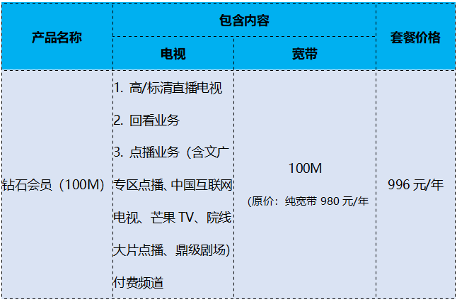还能在套餐内享受100M宽带折扣优惠