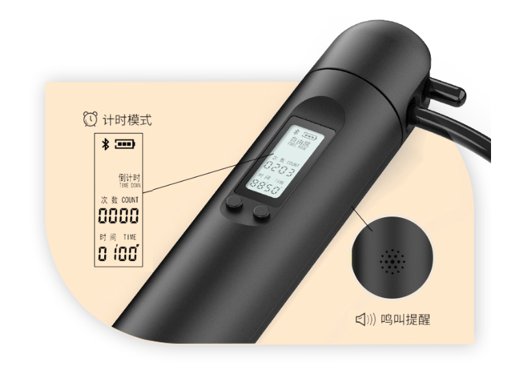 这款跳绳支持自由跳、倒计时跳、倒计数跳3种跳绳模式。相比传统跳绳而言,这款智能跳绳能精准计数,一分钟到底能跳多少下,它比你更“有数”。
