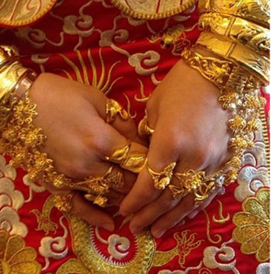 而到结婚时,黄金作为男方的彩礼更是必不可少的,否则女方是不会答应出嫁的。结婚彩礼通常要“三金”,分别指的是:金项链、金耳环与金戒指。
