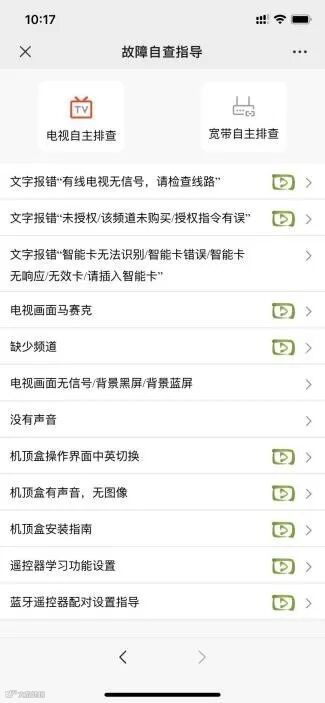 3、排障指导:选择【排障指导】可查询机顶盒等设备类故障视频指导,您可进行自主排障。