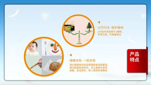 这款纸巾保留了竹浆的自然本色,无添加、不漂白、无荧光剂。通过美国FDA、欧盟AP食品级认证,安全放心。可以直接用来包裹食物、擦手、擦脸,是天然健康的好选择!