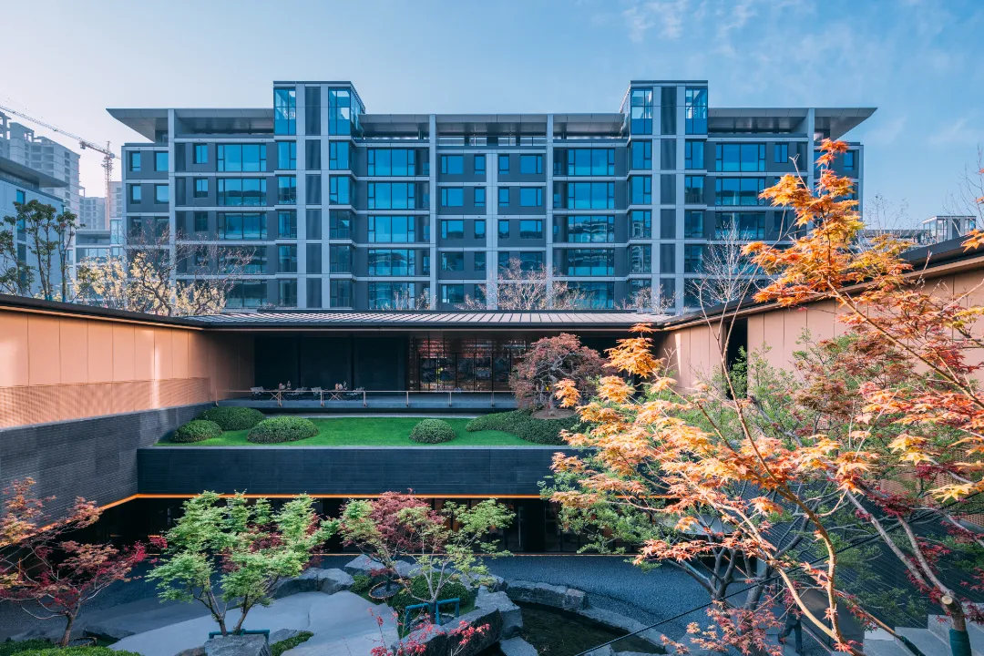 在景观的核心,围合约1100㎡的镜面水景,八株跨越千里,超30年树龄的乌桕树王,带着原生态美静静伫立,意蕴悠远。