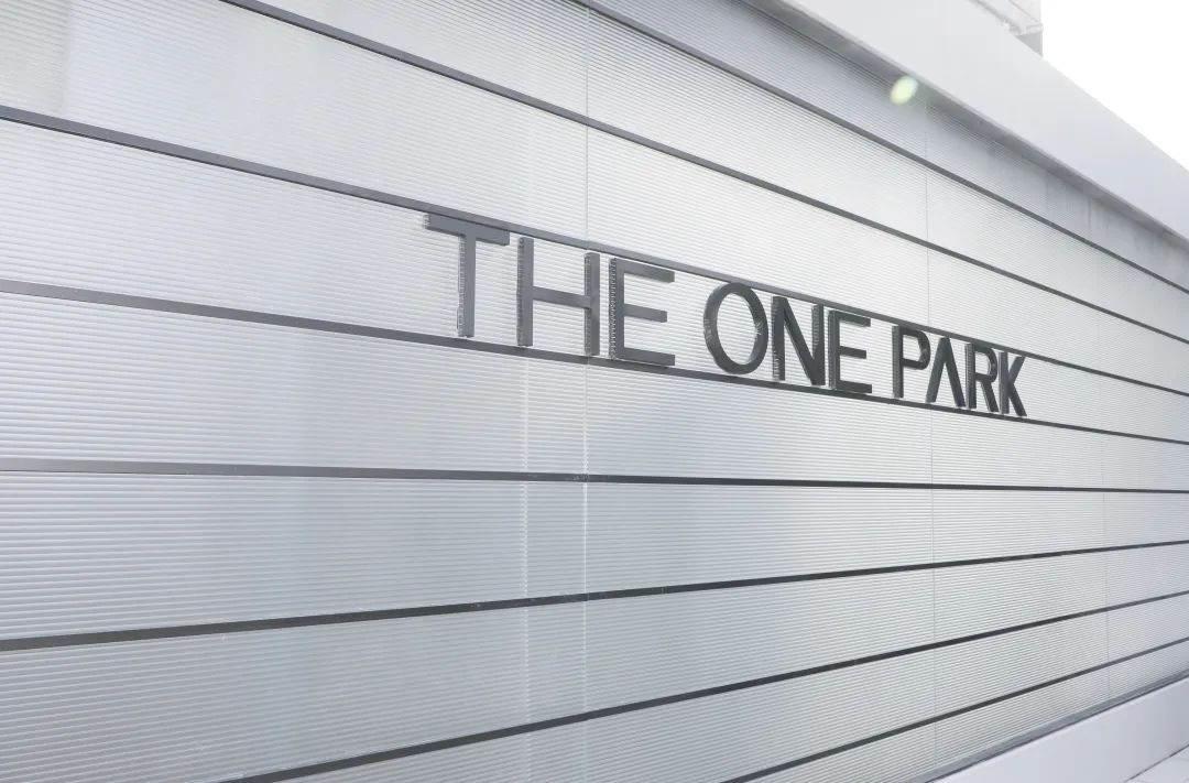 地下车库归家大堂正对自动门的位置,做了古铜雕刻定制 logo,色彩和质感的碰撞,与整体环境十分协调,塑造出精致奢雅的形象气质。