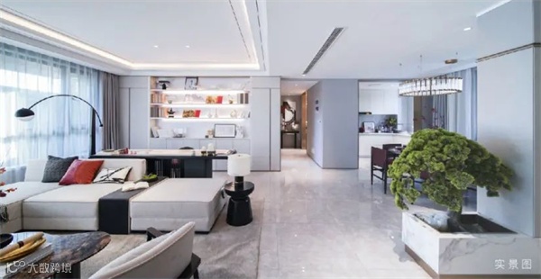 一层一户,空间布局是大平层最明显的优势,由于面积较大,所以能够轻易实现大面宽、多角度景观的空间布局,且能在一层内实现所有的功能分区。在一定程度上,大平层具有“别墅式居住体验”,因此也被业内称为“扁平化别墅”或“平墅”。