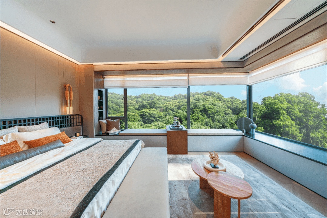 四个大尺度黄金转角——三个270°观景长飘窗,加上超大转角阳台,构成总共四个巨幕观景区,这意味着去到哪个角落视野都是270°环幕的。