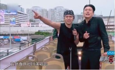黄宗泽和小猪淋着雨在双层巴士顶开演唱会