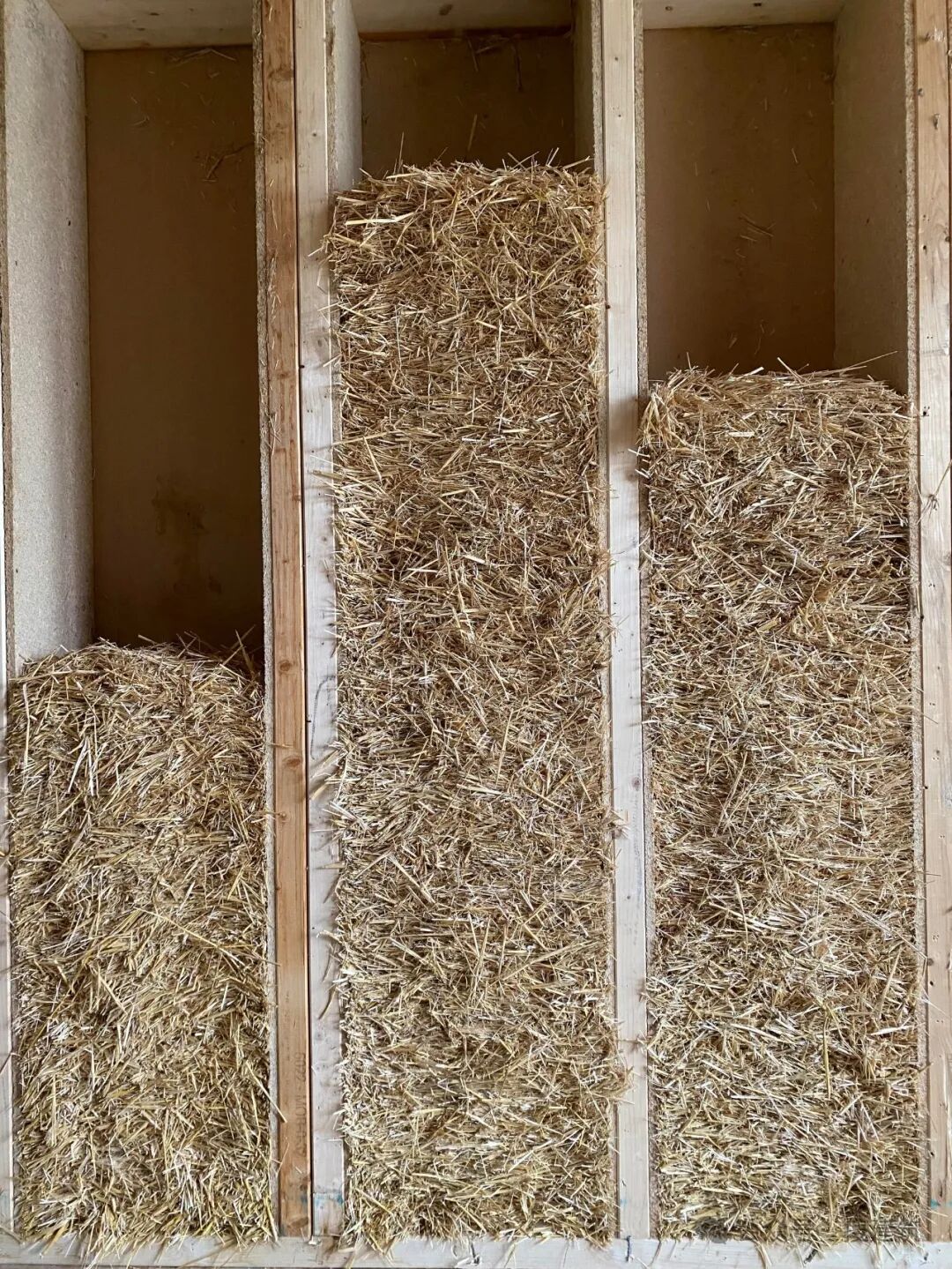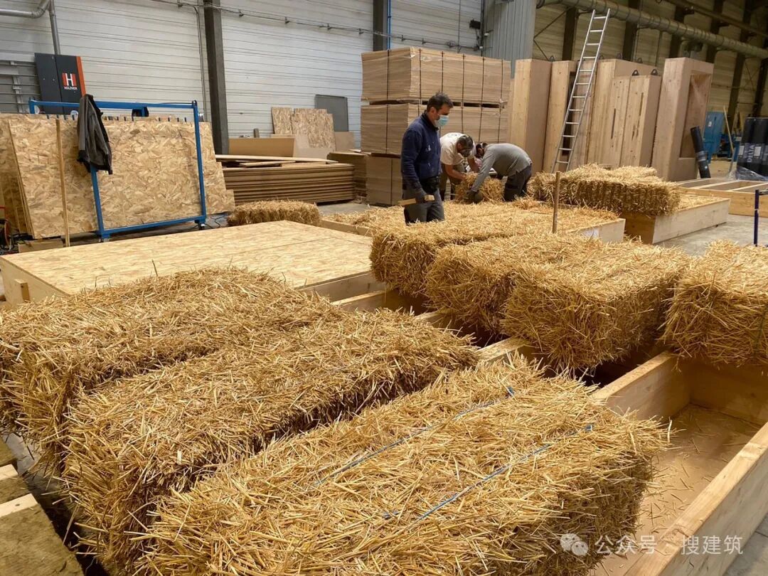 还有稻草。在招标中,发包方要求使用生物源材料,但没有具体说明。MU Architecture 在洛林地区考察了生产建筑用稻草的企业。当地生产商的机器可以生产出 36 厘米厚的稻草包,这一尺寸超出了所需的范围。为了达到这样的比例,需要开发一种完全适用的木质结构。通过这个项目,木匠们得到了使用稻草的培训,稻草与絮状物和纤维素纤维相结合。