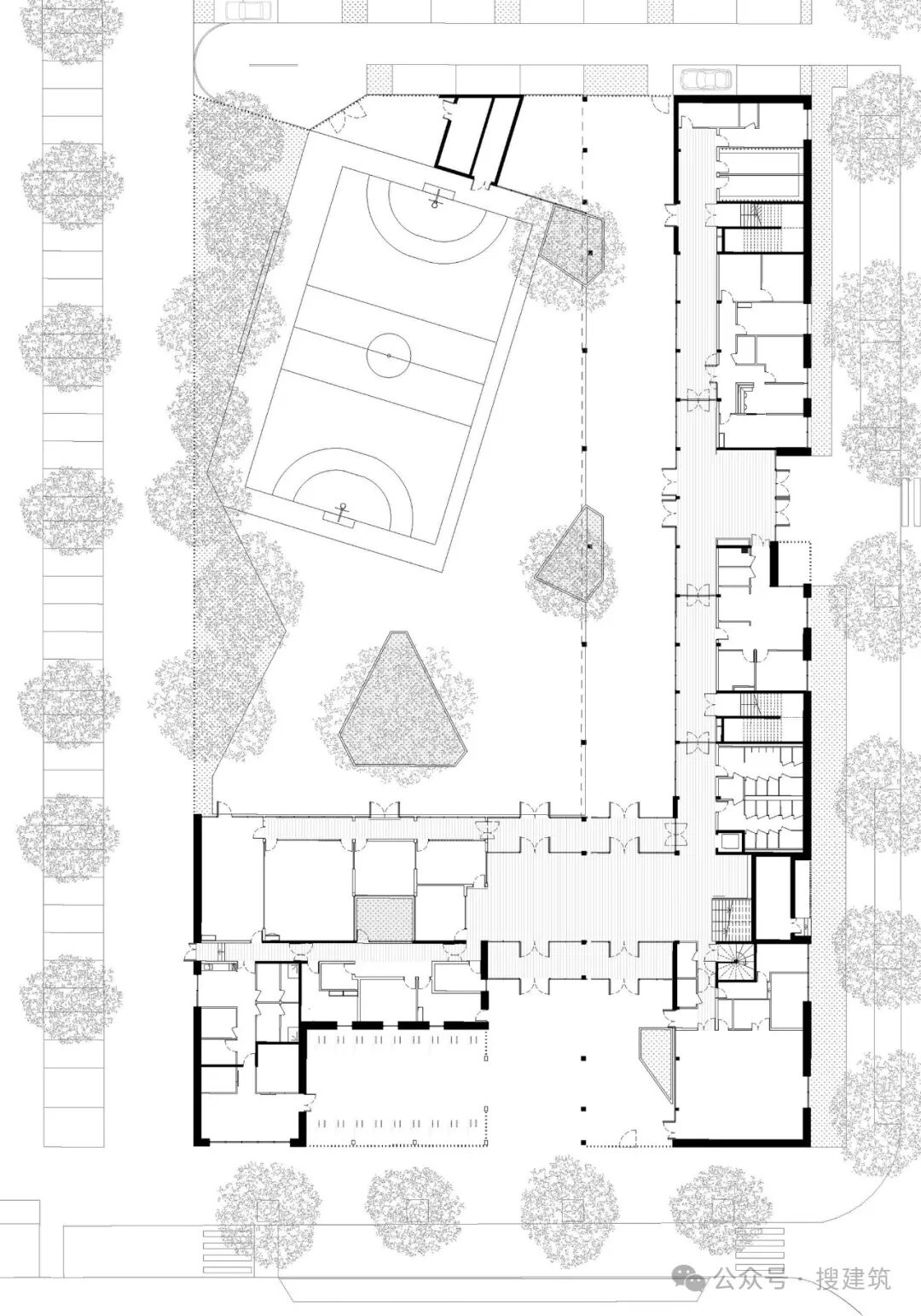 空间的可读性。尼基-德-圣法勒学院的规划设计让每个人都能轻松找到自己的方向。对空间的直接理解及其衔接是该项目的基本原则。从入口处望去,宽阔的视角通向庭院和院落。宽敞的入口大厅也向楼上两层开放。使其生动活泼的楼梯将各个通道分隔开来。整体的处理突出了平面的可读性。大厅的木质檐口被翻转过来,特别是在内部的墙壁上。这种物质性有助于轻松阅读空间。同时,为了提供更多的舒适性,还扩大了流通区域,使其可以自由使用。