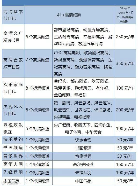 年费:老用户120元,新用户198元配机顶盒,就能享受价值1460元的产品。