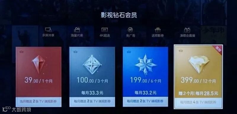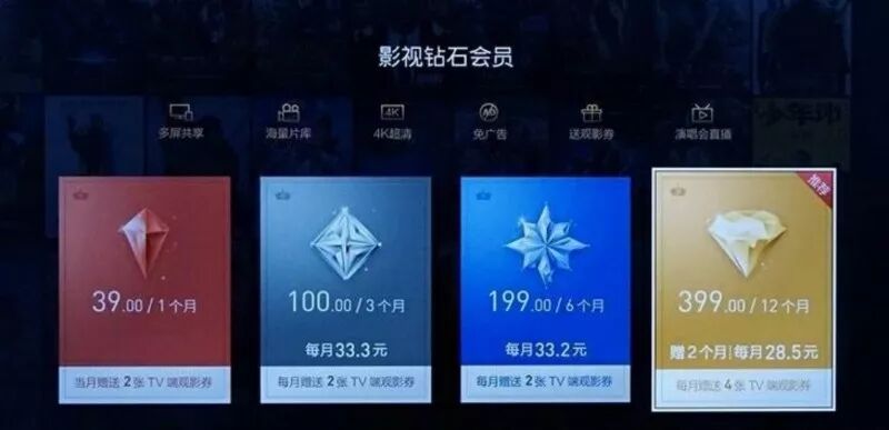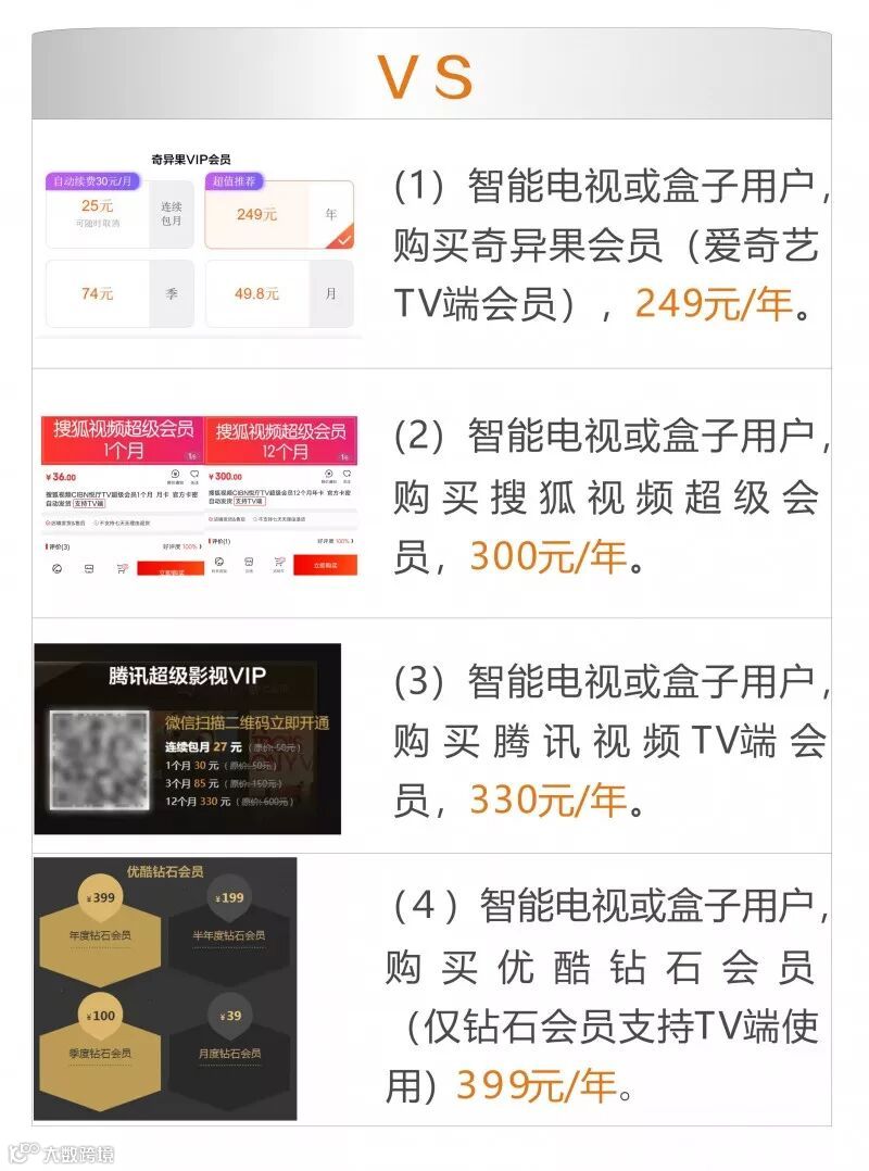 一直相信互联网看电影电视是免费的,但事实是“优酷”的电视端会员年费竟然是399元,将近400大洋啊。