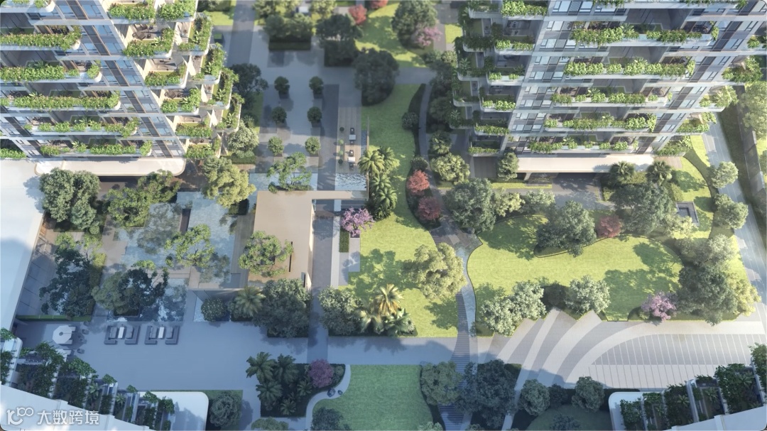 秉持着“立体生态住宅”的理念,项目在社区的层面给出的规划框架就是打造一个垂直花园体系,以四重花园——架空层花园、私家空中花园、公共花园、屋顶花园,营造被花园环抱的家,与自然共生的日子。
