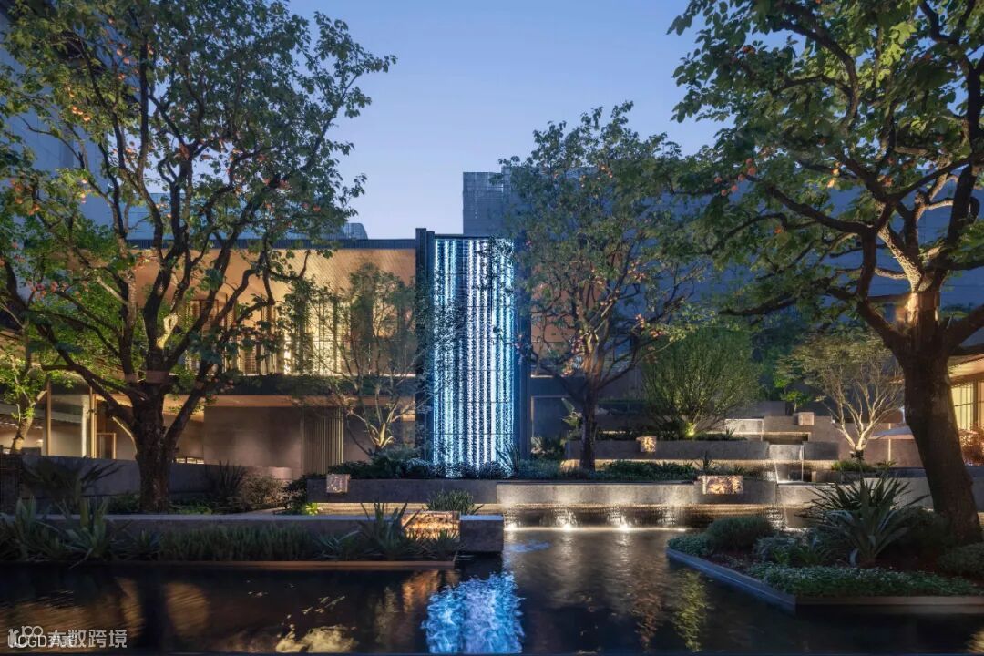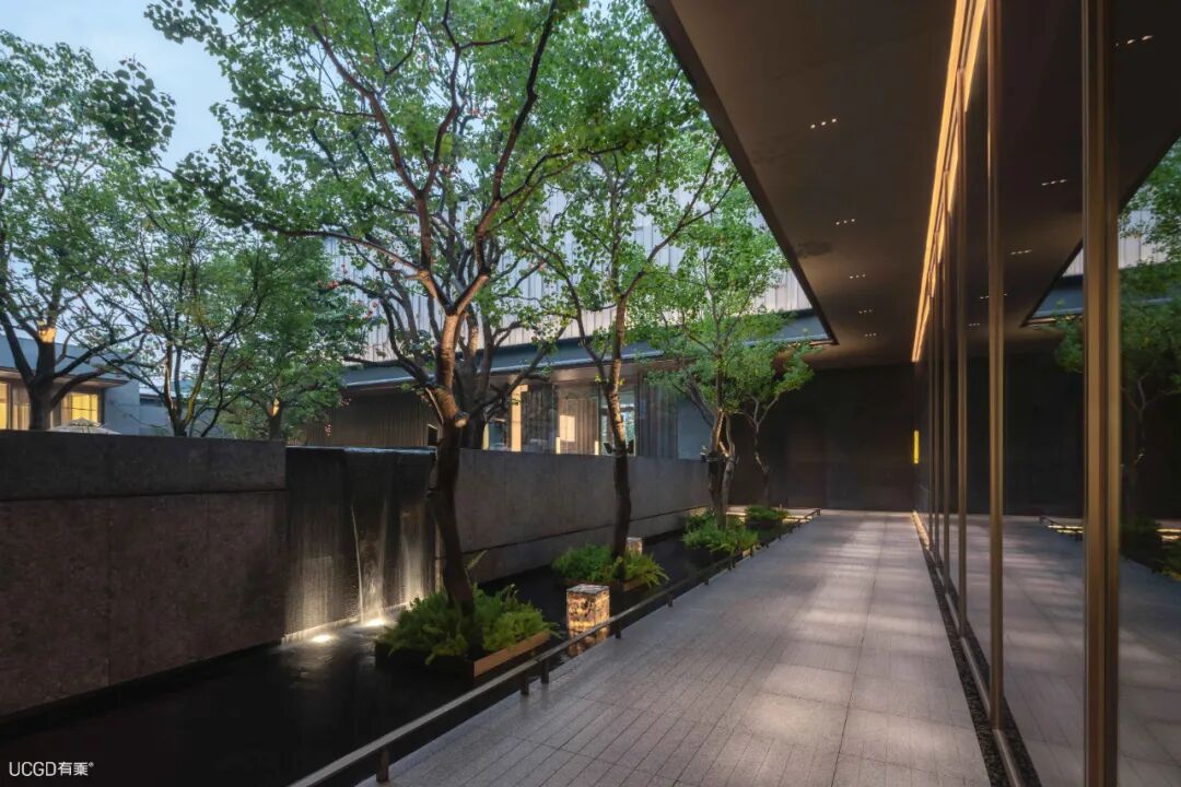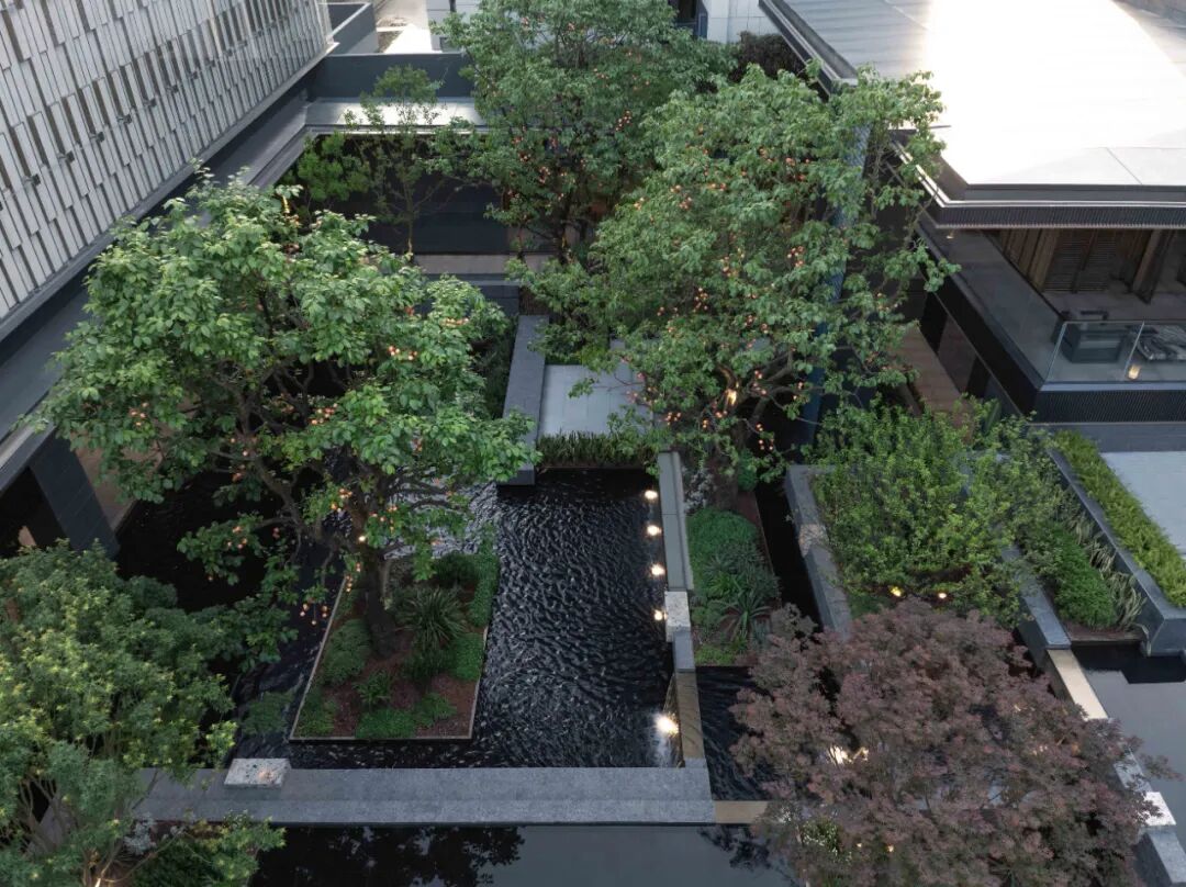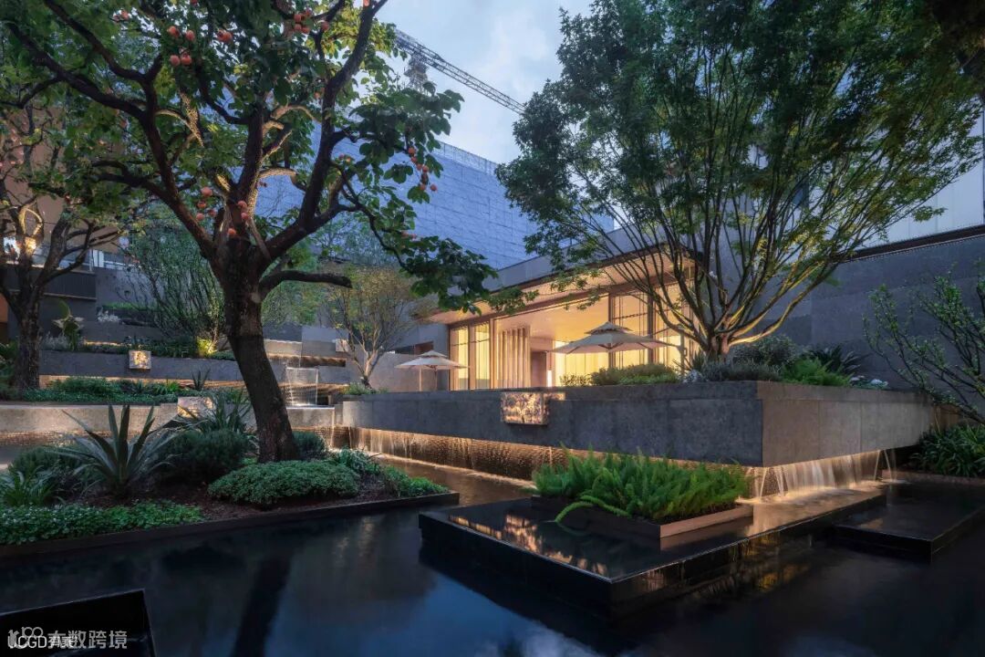 空间之间相互渗透融合,建筑消隐在水绿洄游的自然生境之中,山地叠翠又融于下沉庭院,沉烟、叠水、瀑布,打造独具山城特色的“流水别墅”意境。