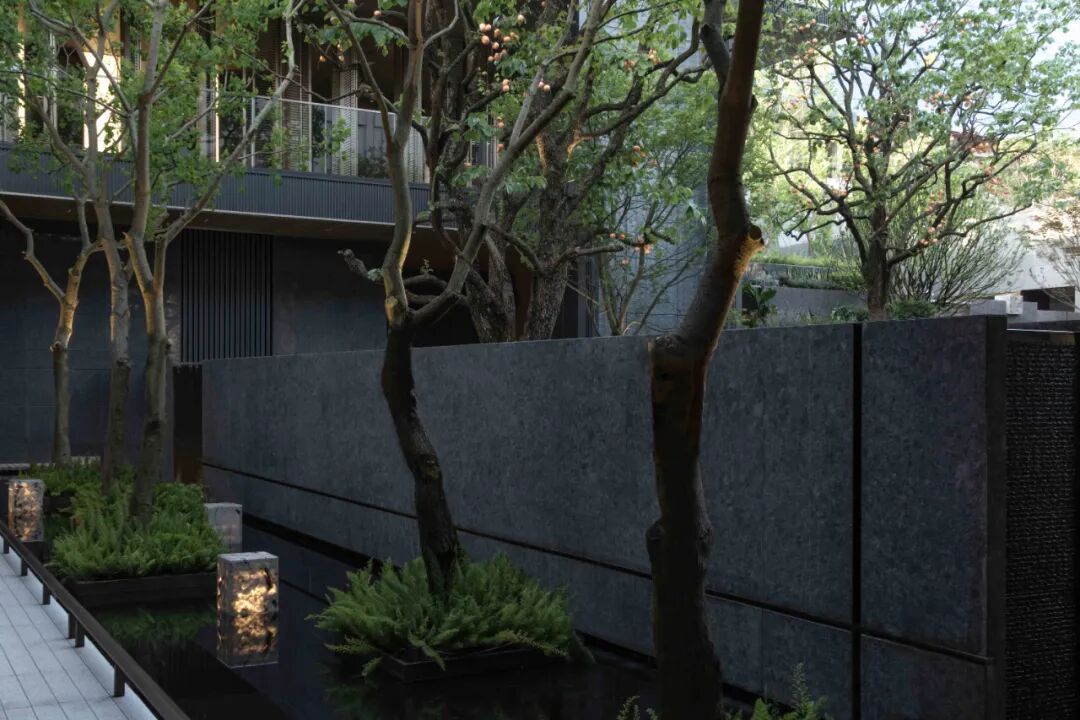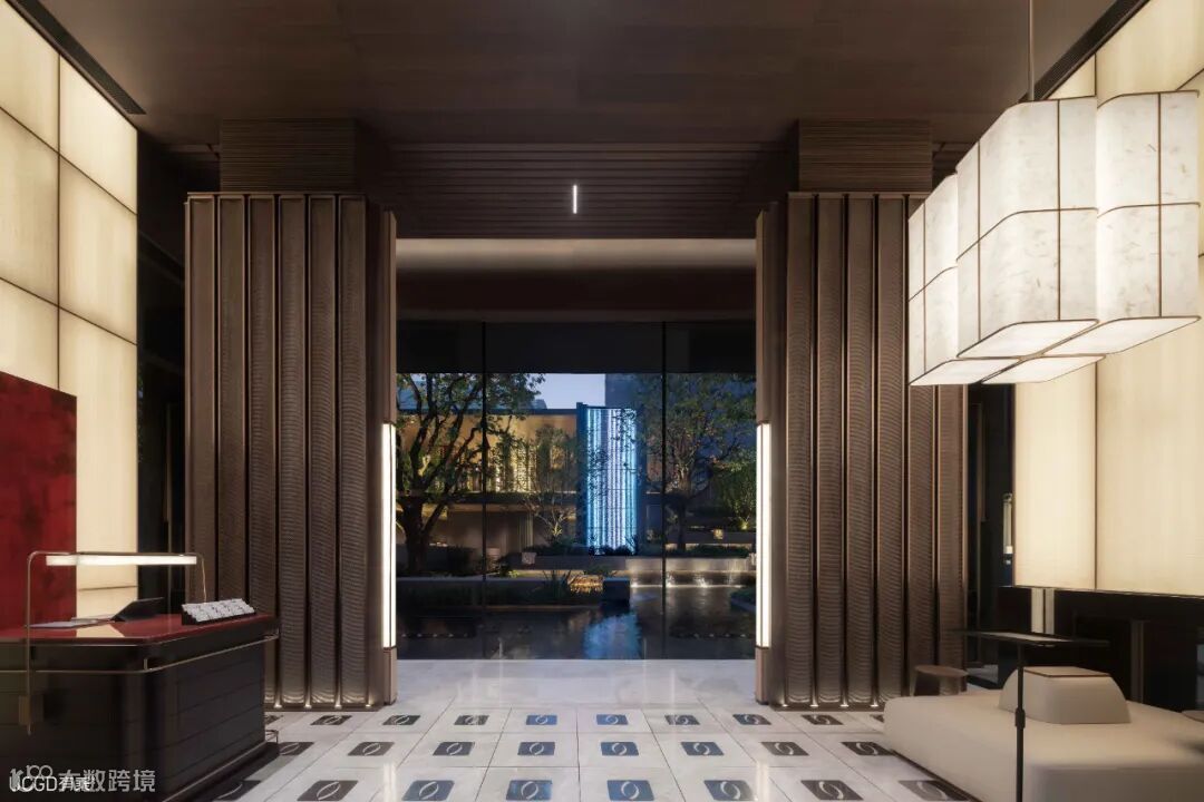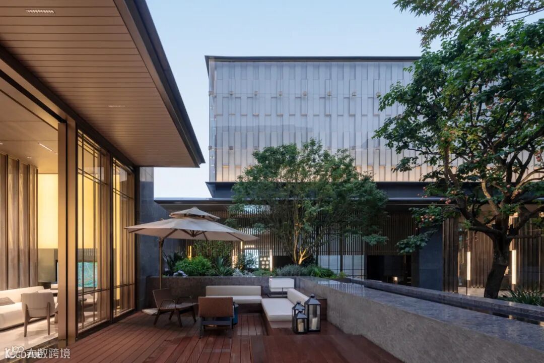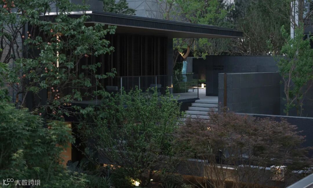 建筑、景观、室内采用一体化设计,门廊、客厅、庭院层层递进,景观视线随开合节奏和空间转折而变化,呈现出静谧而仪式的氛围感。