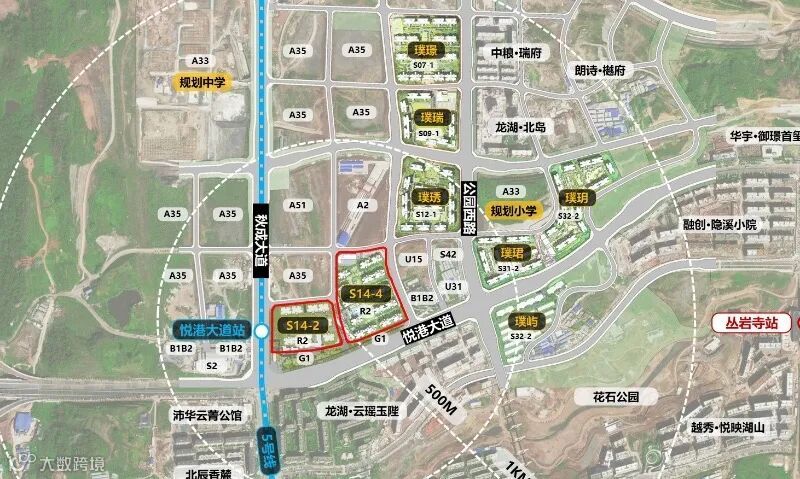 ▲重庆万科连续6次深耕中央公园北区,本案三期——「璞玉」作为璞园大社区的3.0迭代之作,紧靠地铁5号线悦港大道站口。