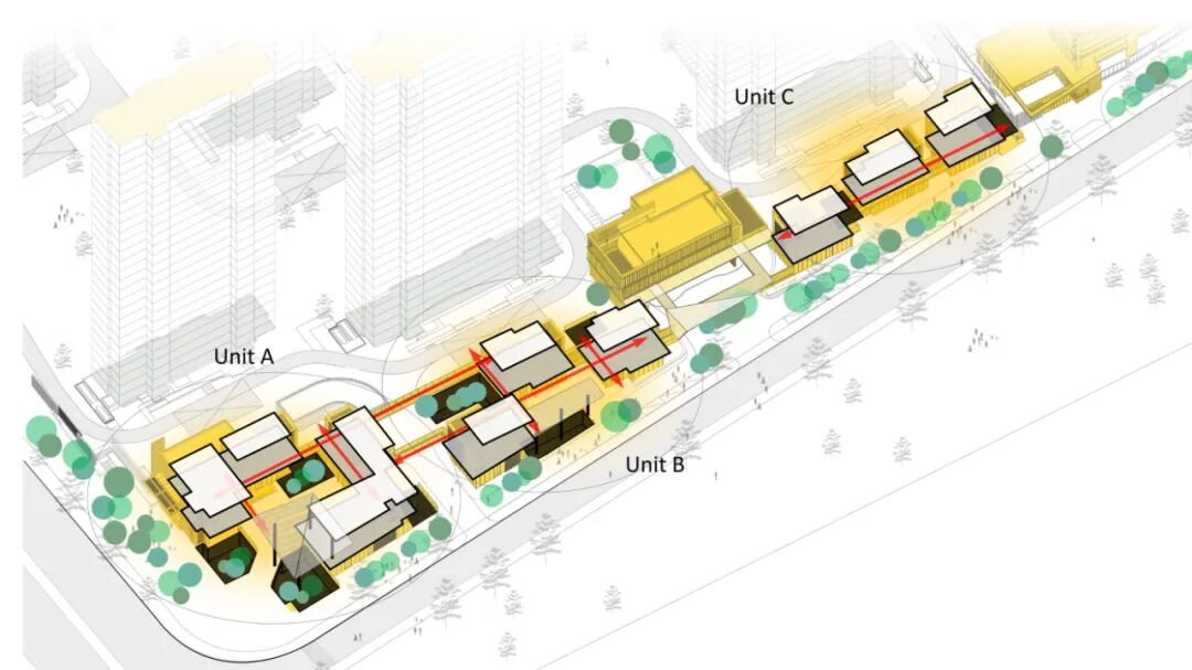 ▲「臻境荟」BLOCK商业街区以「一条折线+三个核心单元」形式镶嵌在社区与城市的边界上。