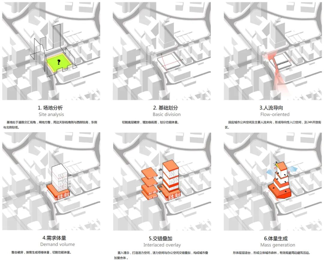 项目基地位于科园腹地,都市核心,交通便利,商圈赋能。但目前该片区密度较高,空间拥挤,交通紧张,绿地不足,公共空间分布不均。方案立足于面向城市,面向自然,面向人性,面向未来四方面思考应运而生。项目关注人与城市,关注产城和谐共生,承袭企业人文生态基因,折叠空间驱动进化,为城市展现最美好的未来。