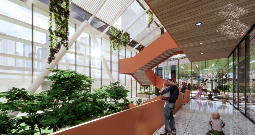 打造有温度的工作场所,多一些自然采光通风的空间、公共互动的花园,鼓励交流、汇聚。以人工智能、数字技术支撑,激发人与人、人与建筑的互动。