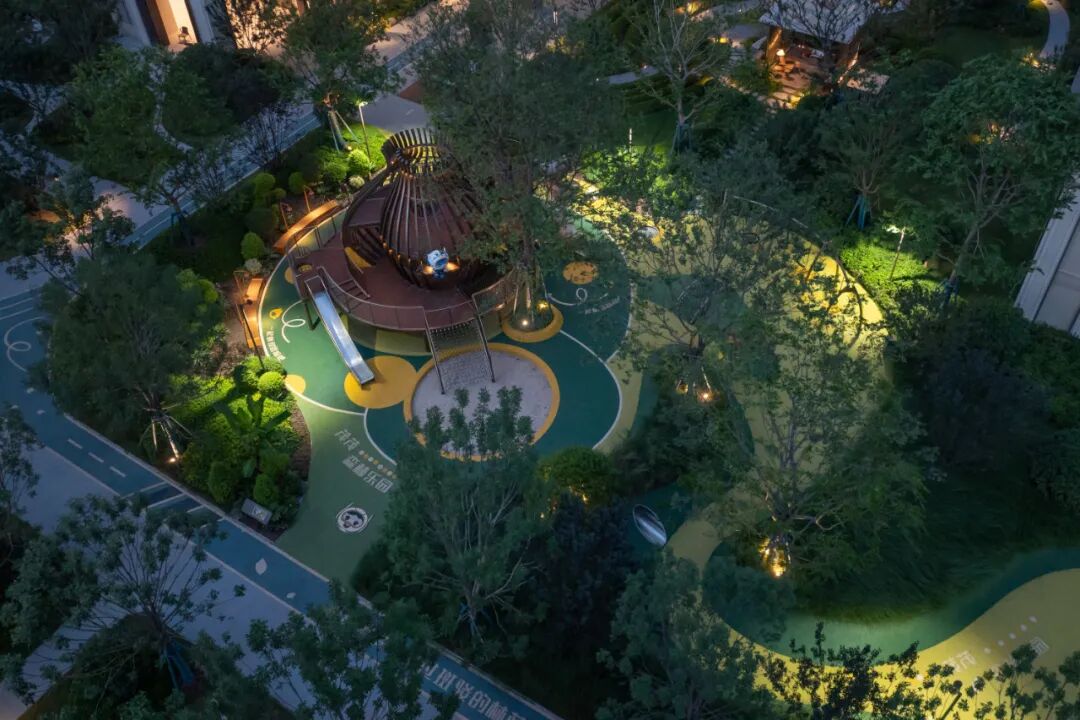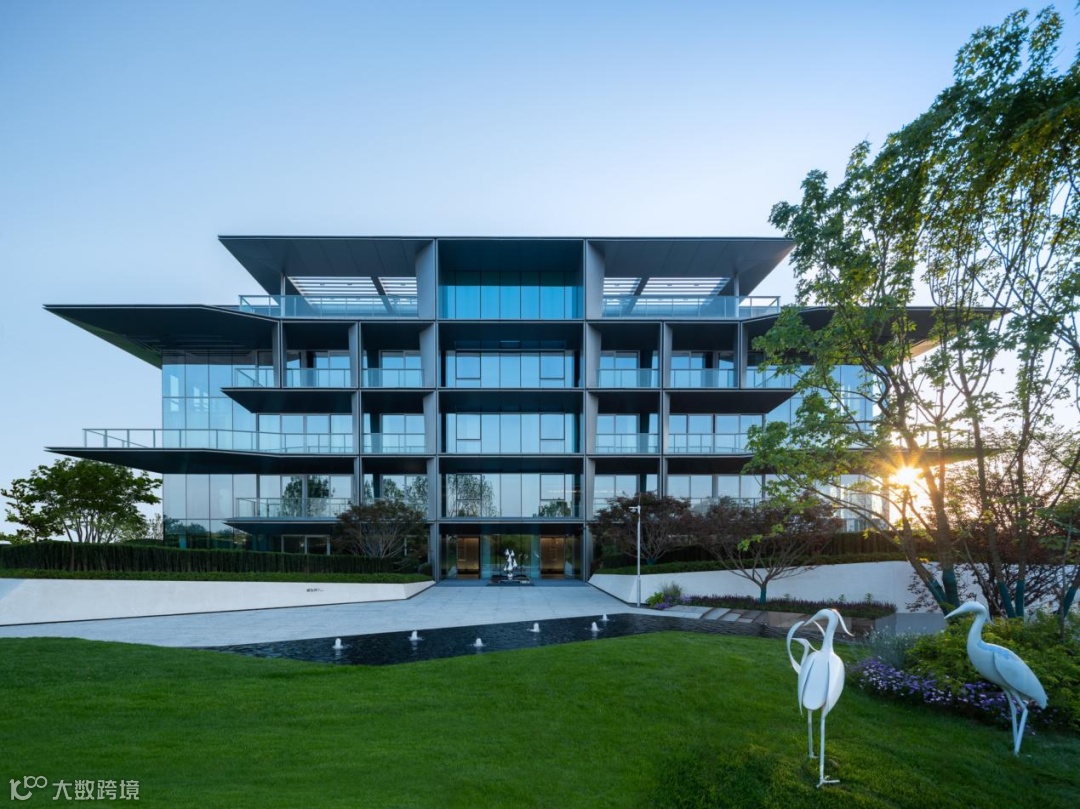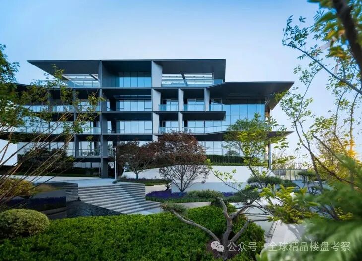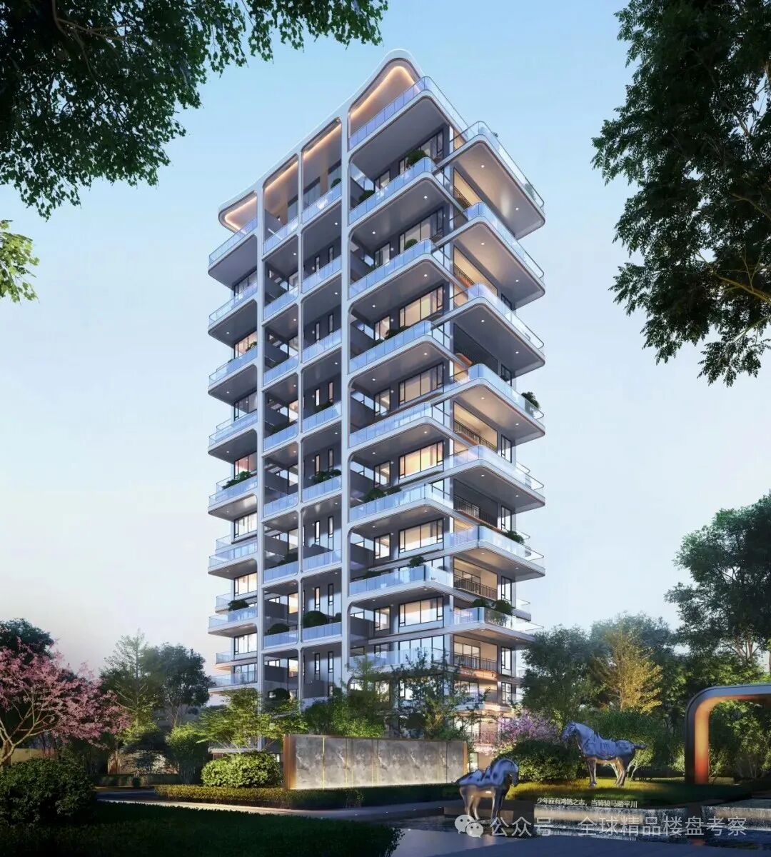在建筑营造上,呼应超现实主义理念,在DU设计加持下,一改传统叠拼立面形态,延续园区超现实主义风格,与园景交相辉映,大面积的玻璃幕墙和折线铝板,加上泛着迷人光泽的金属线条,搭配着观景阳台,全景落地玻璃,屋顶露台,双层院落,从无人机的视角看去,像极了一艘豪华游轮!