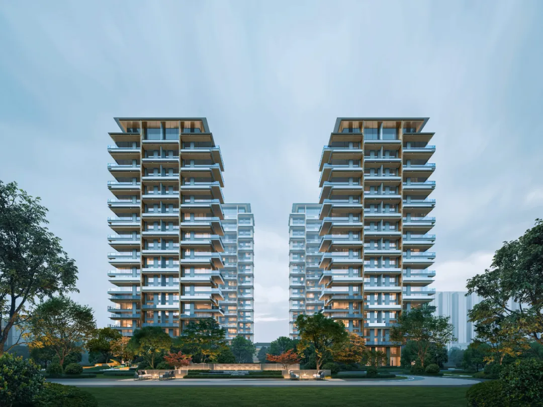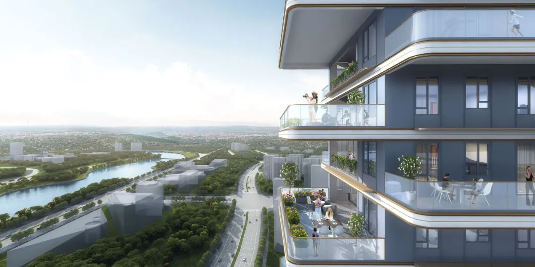 整个项目采用了”第四代住宅“理念设计,奇偶层错层带来了空中露台。同时,在建筑立面的设计打造上,借鉴国际先进的折叠建筑理念和航天工业美学,形成如同折纸般的线条造型。